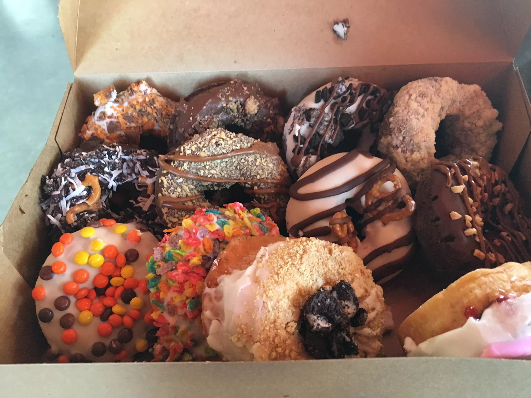 While most of the toppings translate well into doughnut form, some crispier toppings like pretzels and cereals become slightly soggy from the icing, and their textural elements are lost.