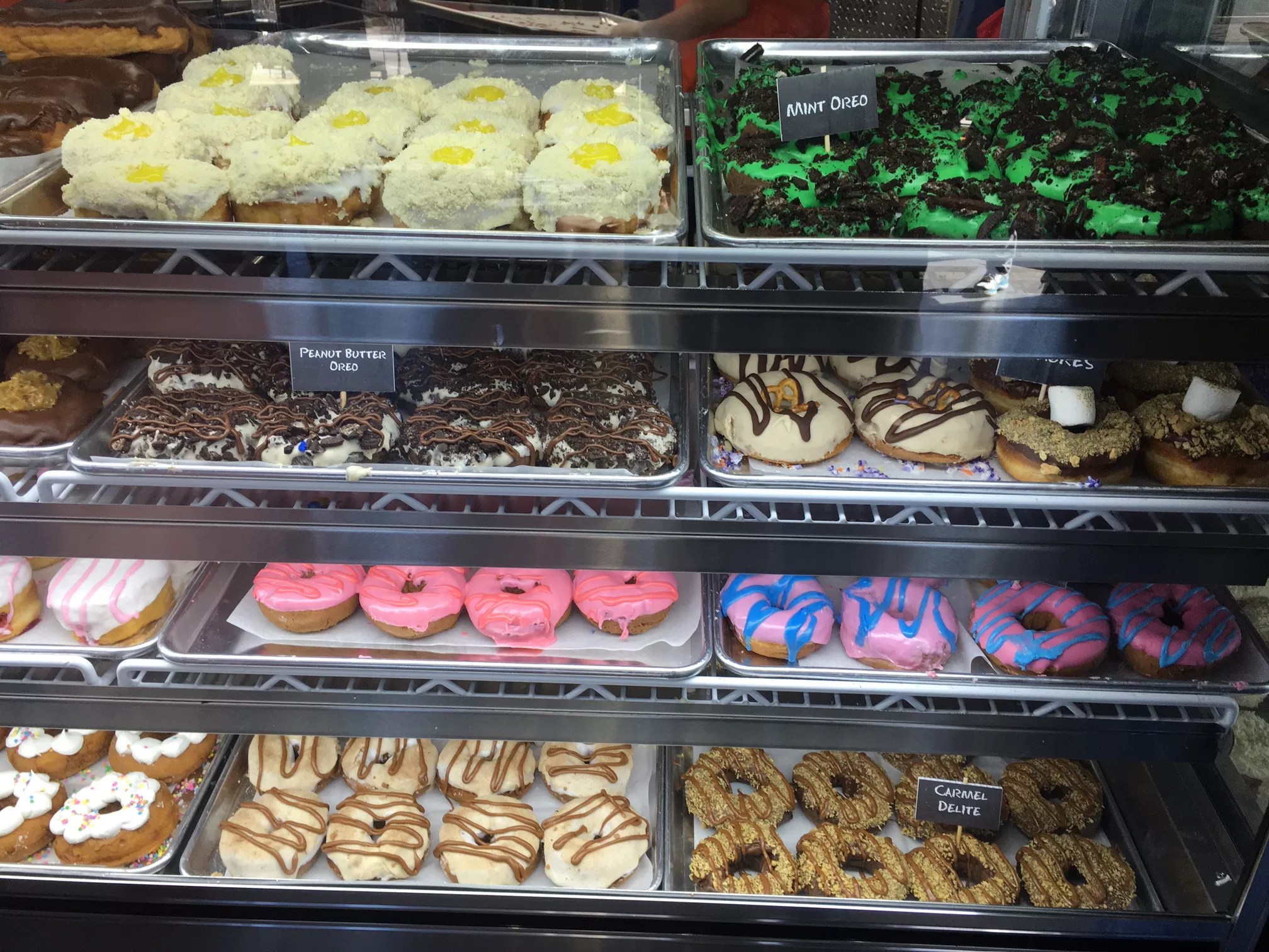 Despite the high levels of business, the cases stay stocked at Hurts Donut.