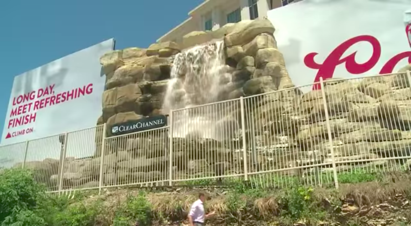 Coors Light waterfall billboard above Katy Trail