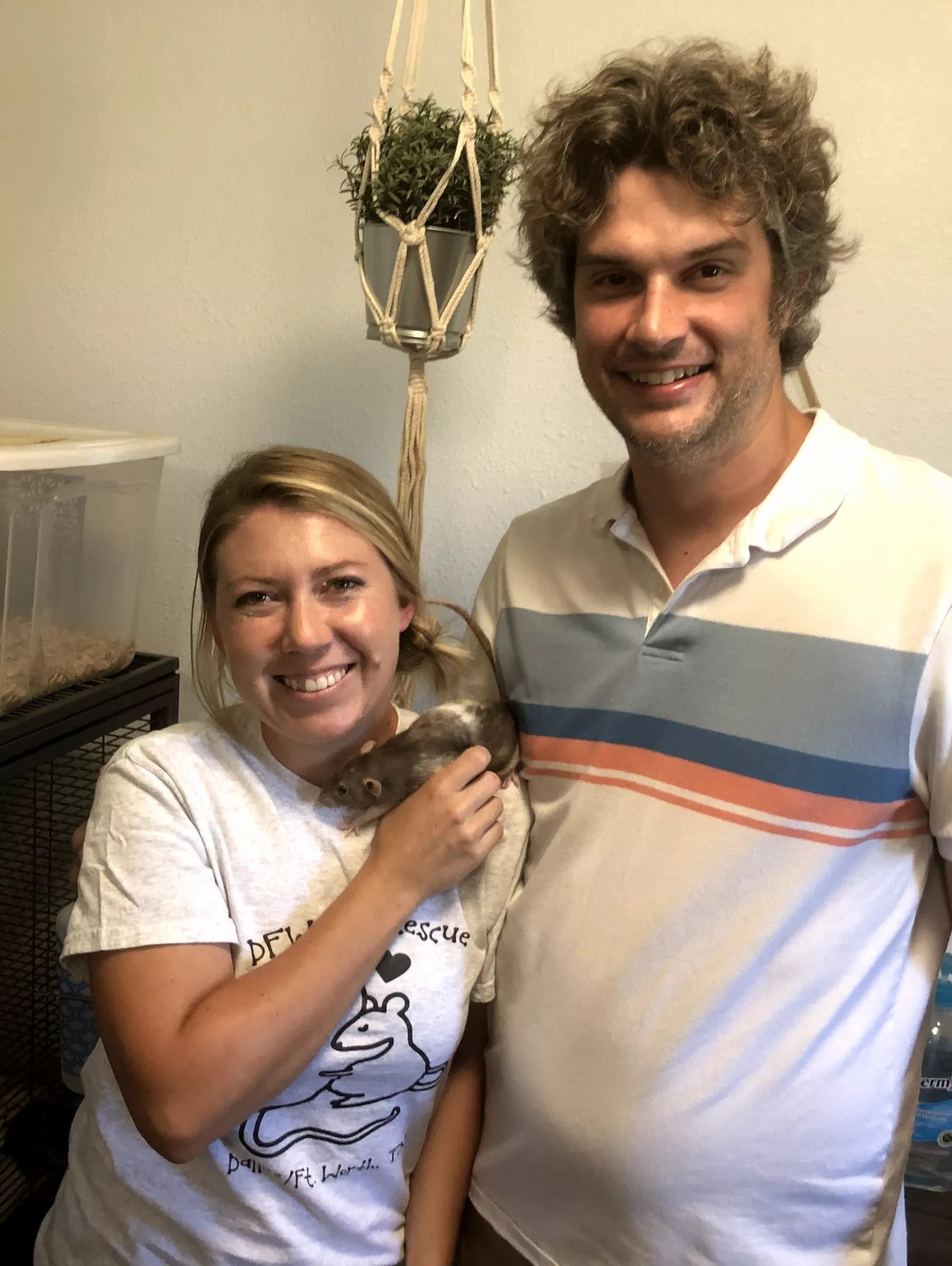 Matthews started her first iteration of the nonprofit at her home in The Colony before she met Wesner, who also helps with the daily cleaning and feeding duties to care for the rats. Since then, they’ve built a dedicated following of 1,500 active members who participate on social media or help with their time or money to keep DFW Rat Rescue running.