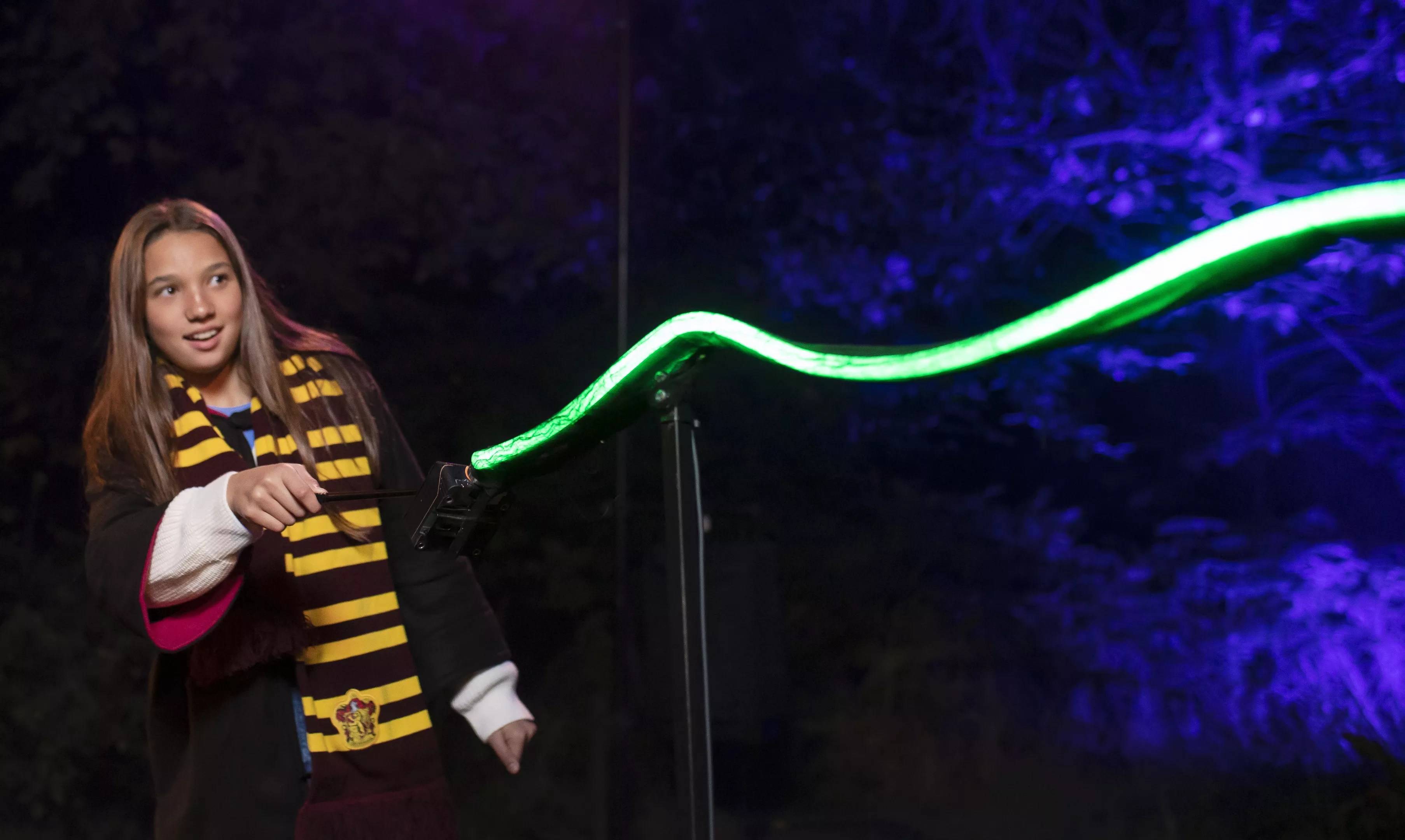 The walkthrough experience will also have interactive photo opportunities. You’ll be able to cast spells with wands that emit special neon lights illuminating the walking path so you can get photos of you and your friends engaged in some friendly wizard duels for Instagram. You’ll also be able to summon wolves and create light shows with your wand, along with a few other surprises.