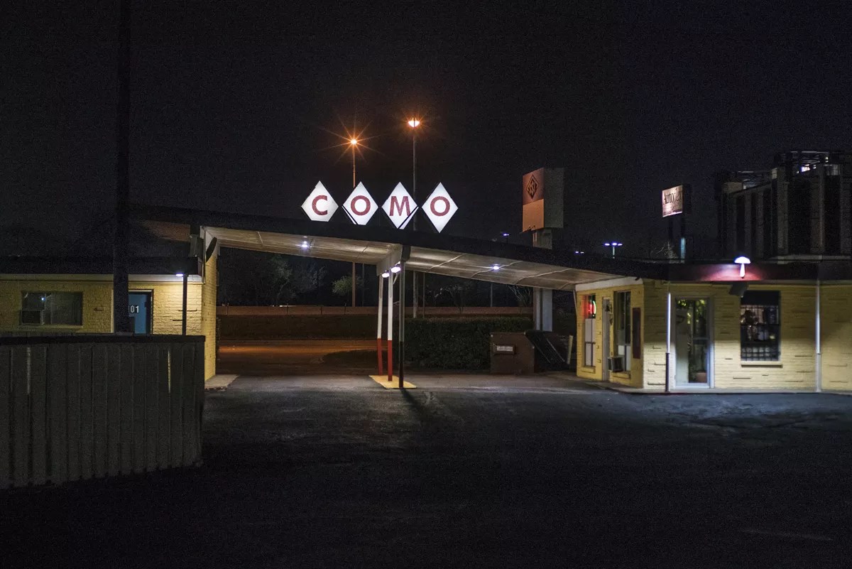 In the suburb of Richardson, next to a Lamborghini dealership on U.S. Highway 75, sits the Como Motel. The Como has been a landmark since it was built in 1964, though in Richardson that isn’t saying much. We’ve landed there guided by many a reverse recommendation. My boyfriend has a cold, and it’s freezing outside, but we’re most disappointed to find the room too decent.