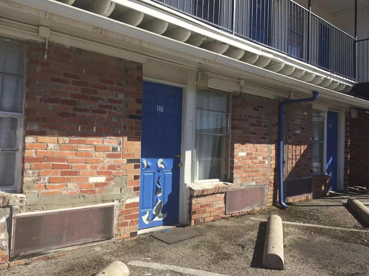 The Cole Manor was built in 1946, and offers an idealized lavish life, if you’re destitute. The rooms are the size of a walk-in closet. It’s the the kind of place you’d sooner forget to pack your blow dryer than your gun. Even the blue paint on the door suggests that it’s been fiercely ripped off by a tweaked-out hand. There are a few people, even a single woman, smoking outside of their rooms. One of the rooms is open and an old man and a young man can be seen sitting in there. There’s a community microwave on the patio, and a man is standing in the cold, waiting for something to heat up. They’re all quick to shut their doors or walk away as our car approaches.