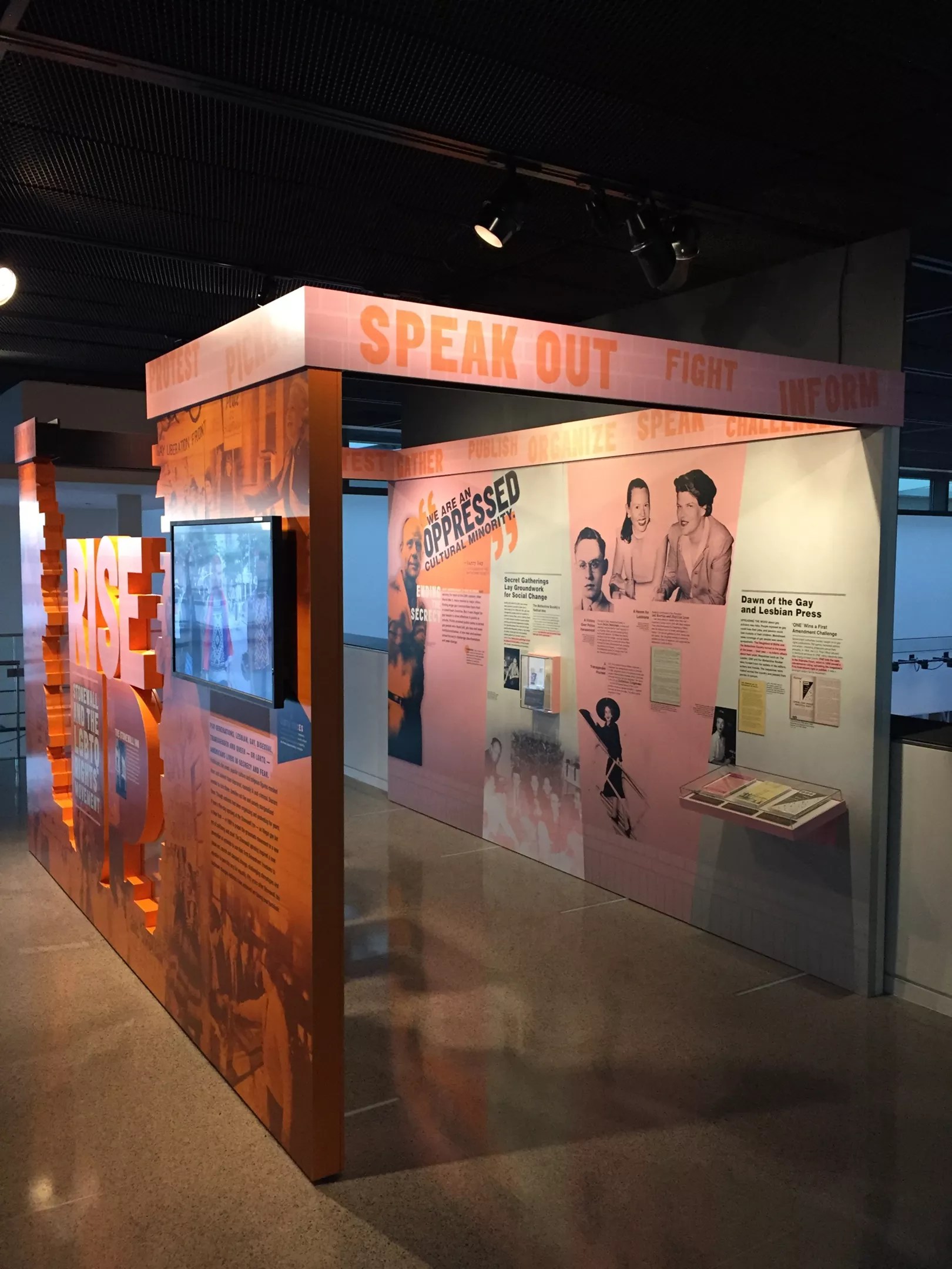 “We’ve been excited about it because we cover some of this history in our Pivot to America gallery,” Higgins says. “We look at the evolution of rights for different citizens, and one of them is the rights of LGBTQ people, but it only scratches the surface. This exhibition really gives us a deeper understanding and provides much more historical context.”