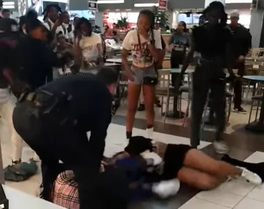 The fight broke out in the mall’s food court. An employee behind the counter of one of the food court restaurant’s recorded a video capturing at the tail end of the brawl. The video shows police trying to pull three women off each other as a crowd gathers around them, some pulling out their cell phones to record their own videos.