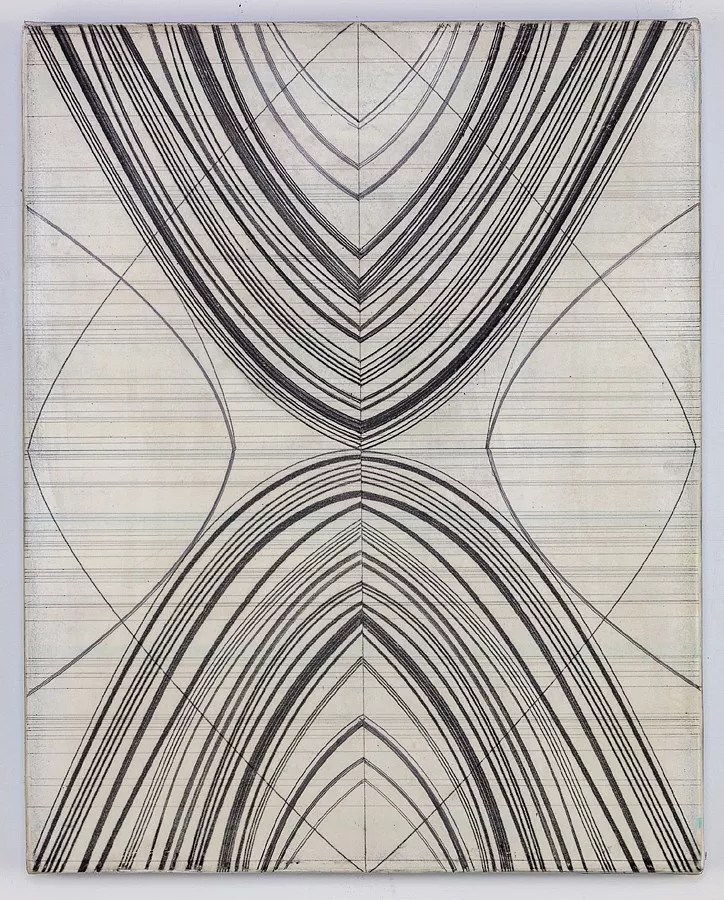 In the category of “Artists Who Draw Inspiration from Lots of Different Places,” Michael Young ranks dangerously close to the top. His artistic language is drawn from a mishmash of seemingly unrelated subjects: pottery, tantric art, geology, seismographs, desert landscapes, petroglyphs, Japanese pottery, Native American design languages, textiles, microphotography and beehives, to name a few. He’s channeled elements of each into the geometric paintings that make up Updrafts.