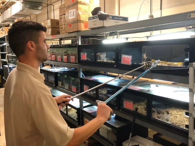 Visitors also can’t interact with reptiles, but reptile and amphibian zookeeper Carl Hollowed does it with little to no fear.