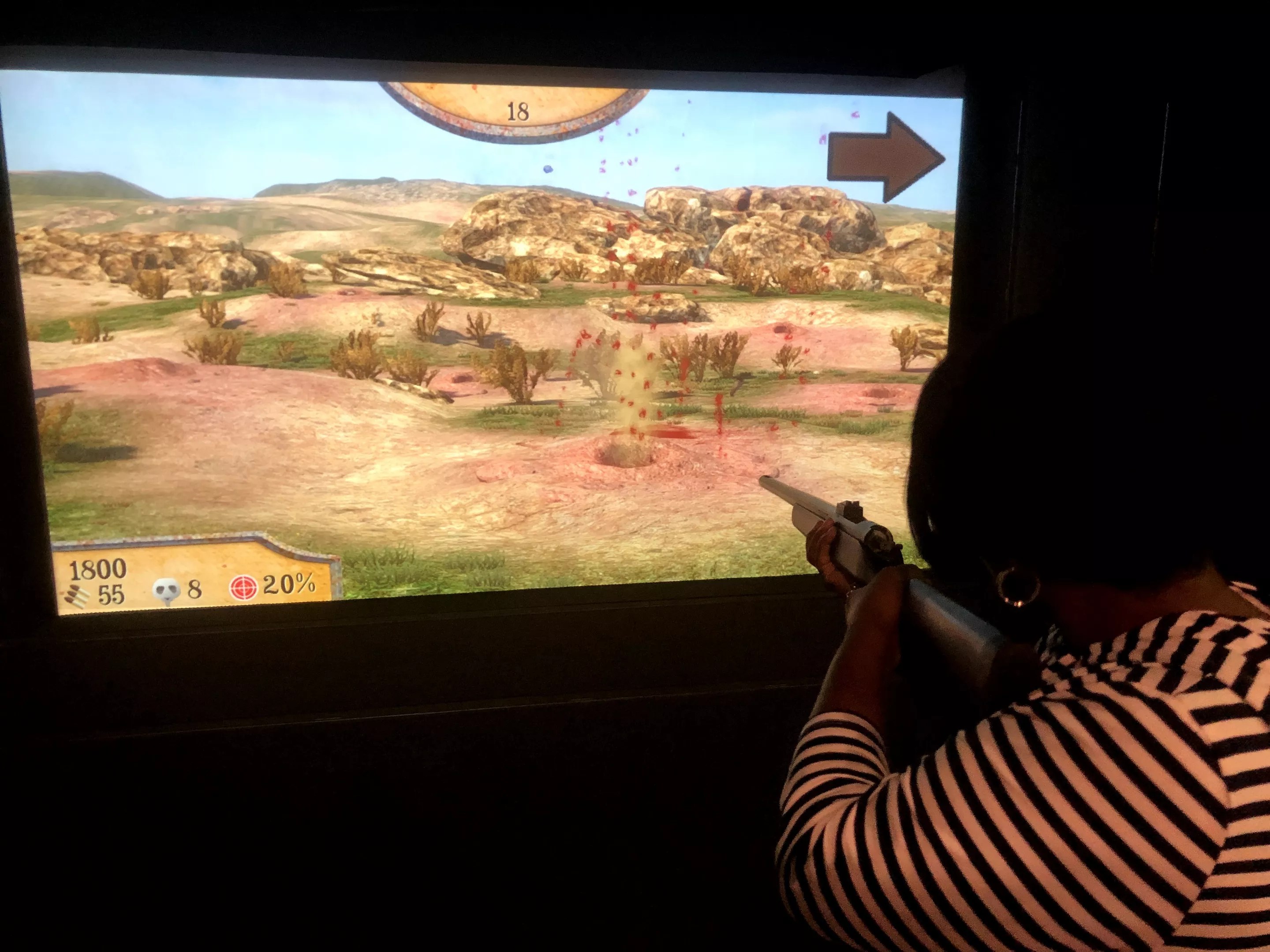 Kelli Nicole McClain blows away some desert varmints for points during a round of Prairie Dog Hunt at the Crush It! Virtual Sports Lounge.