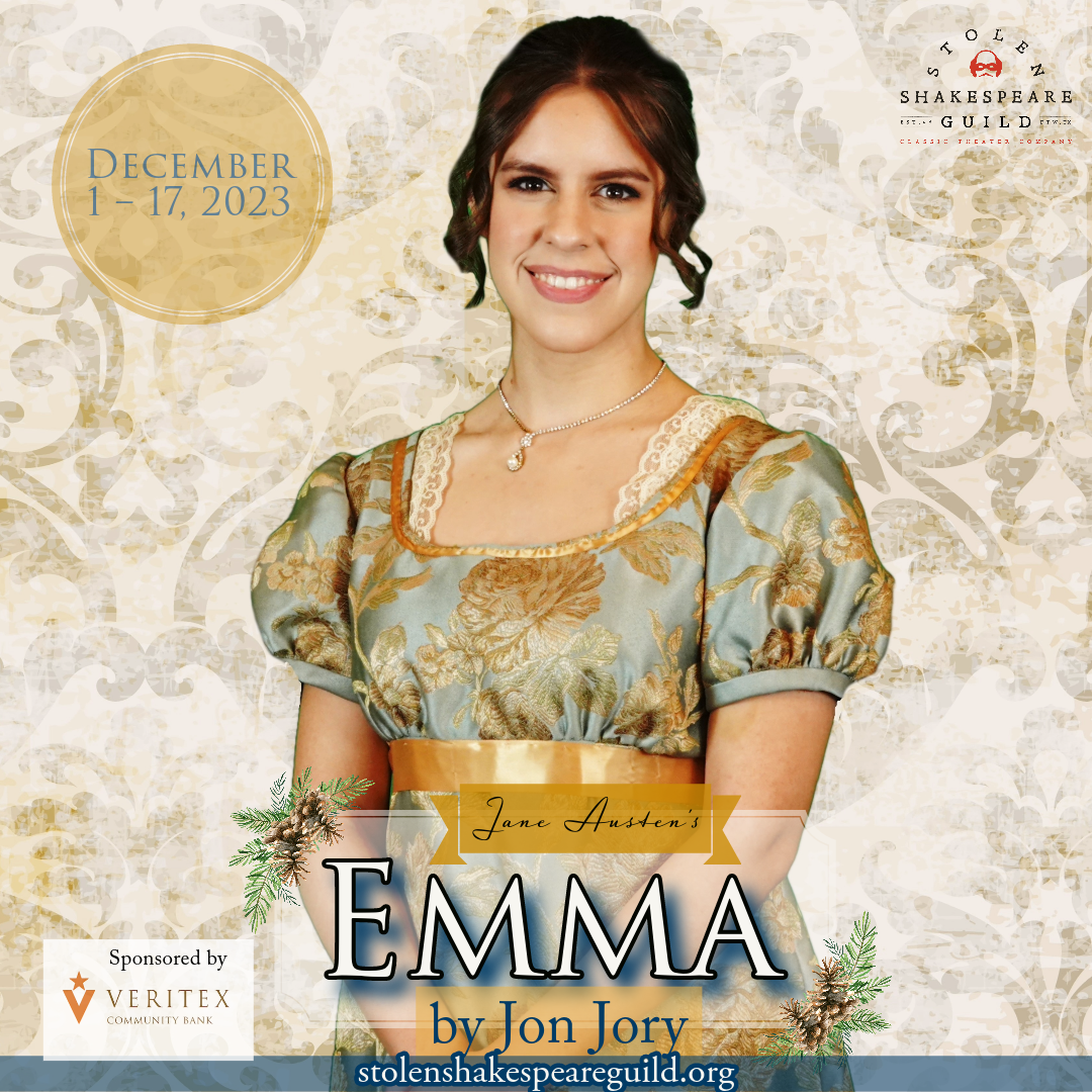 Hanukkah Lighting at Galleria Dallas Stolen Shakespeare Guild’s Peyton Rogers stars as Emma Woodhouse. Photo by Jennifer Stewart. Poster Design by Lauren Morgan.
