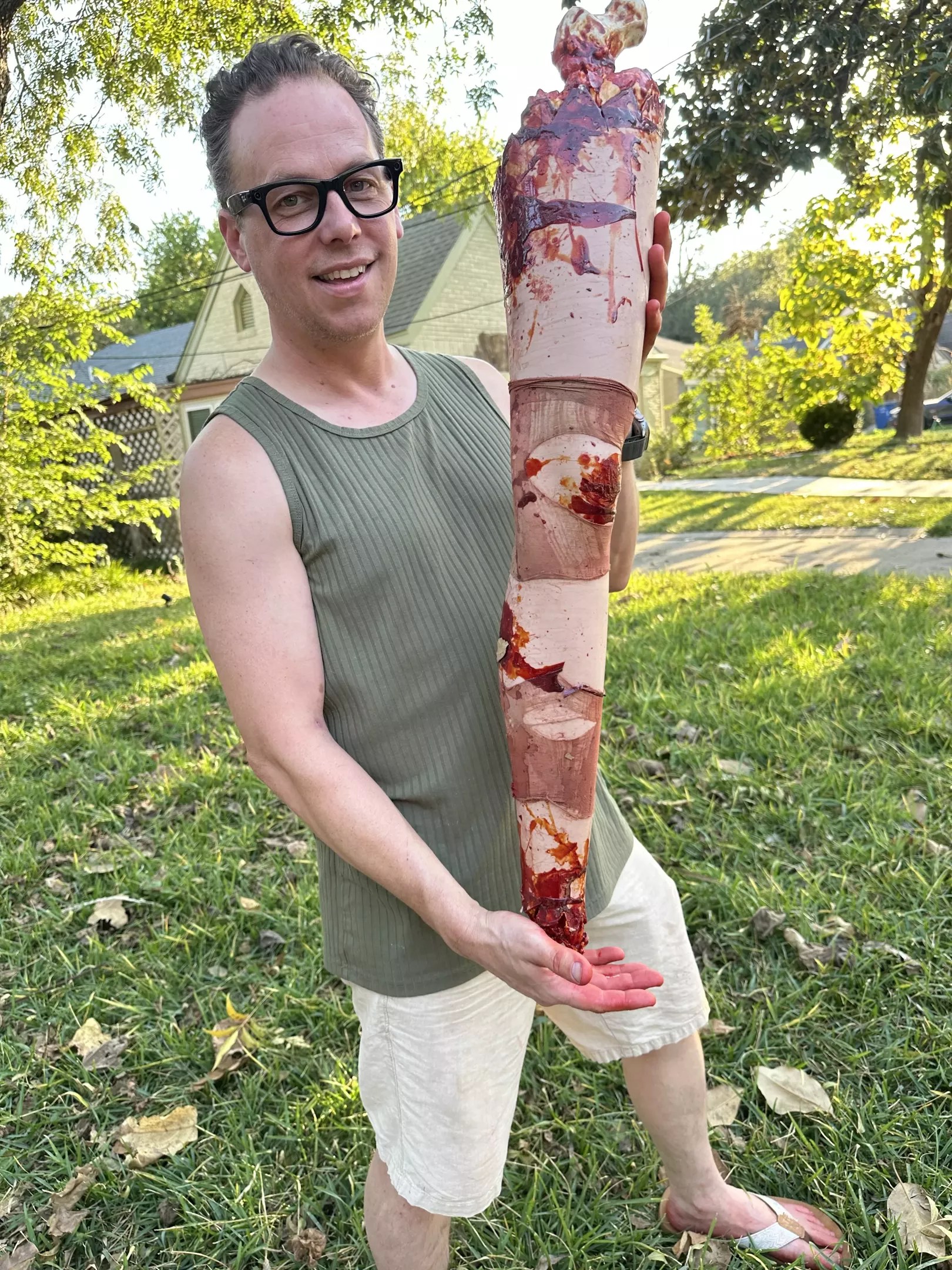 Steven Novak displays a leg he devised from a mannequin. Maybe he’ll turn it into a Christmas Story-style leg lamp for the holidays.