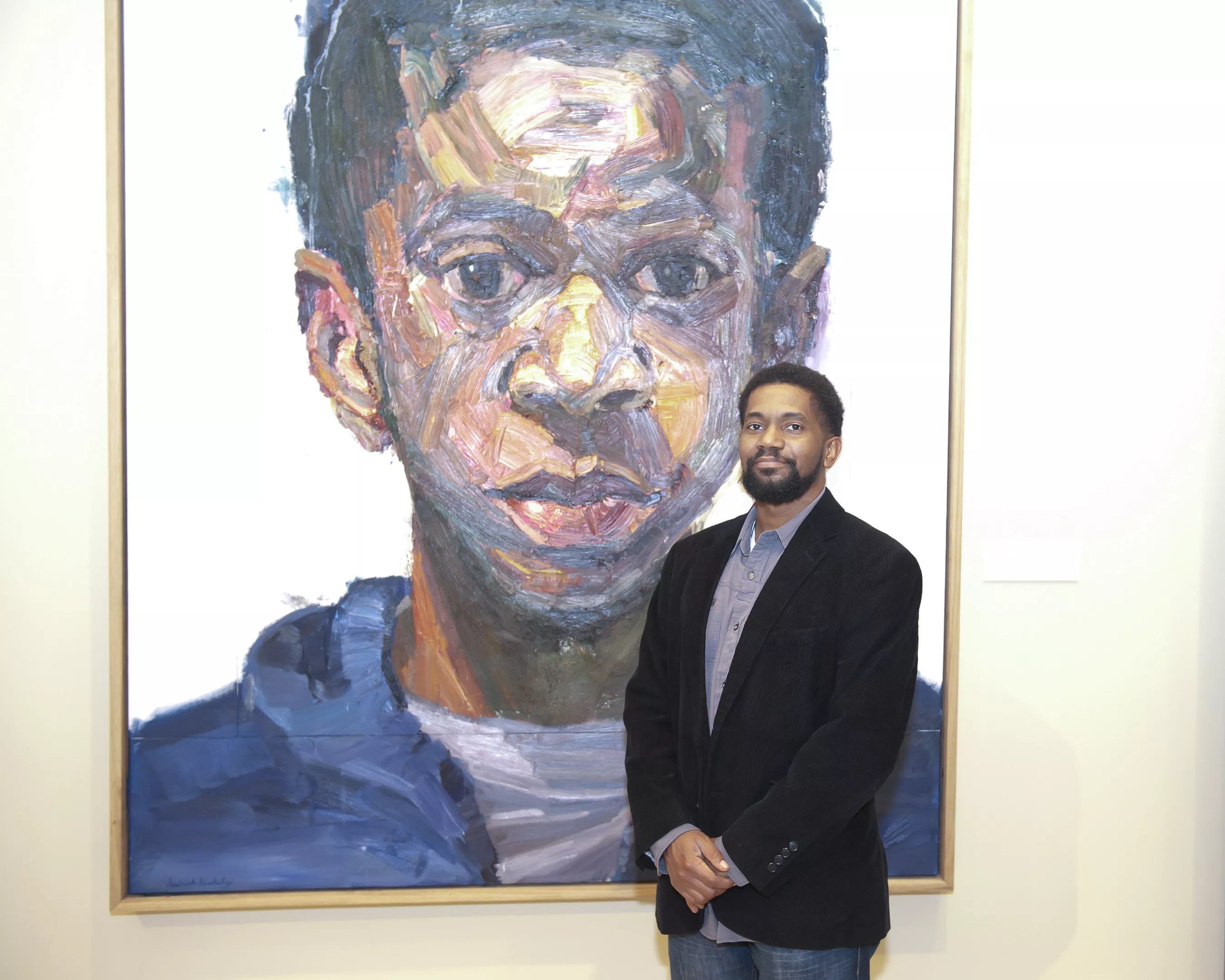 Sedrick Huckaby at the Meadows Museum with his painting