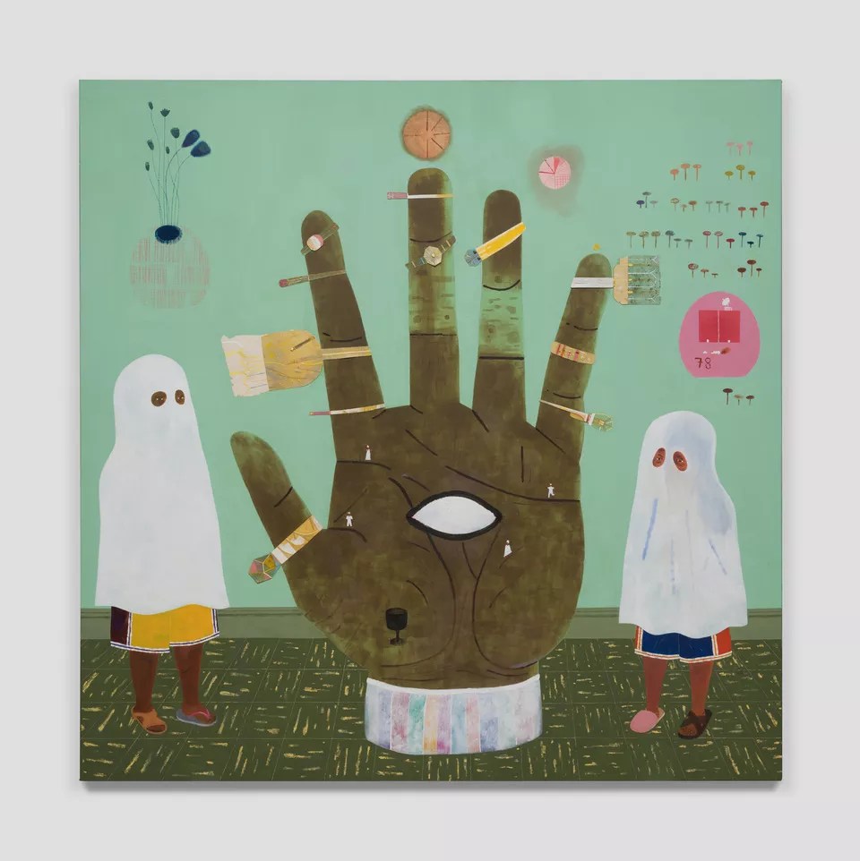 The viewer can dig deep into these themes or let the colorful, vibrant works wash over them with a delightful mix of materials and subject matter that explores enchanting dream states. Ortiz isn’t concerned exactly how you absorb the story she’s telling – there’s an entry point for every viewer of any age.