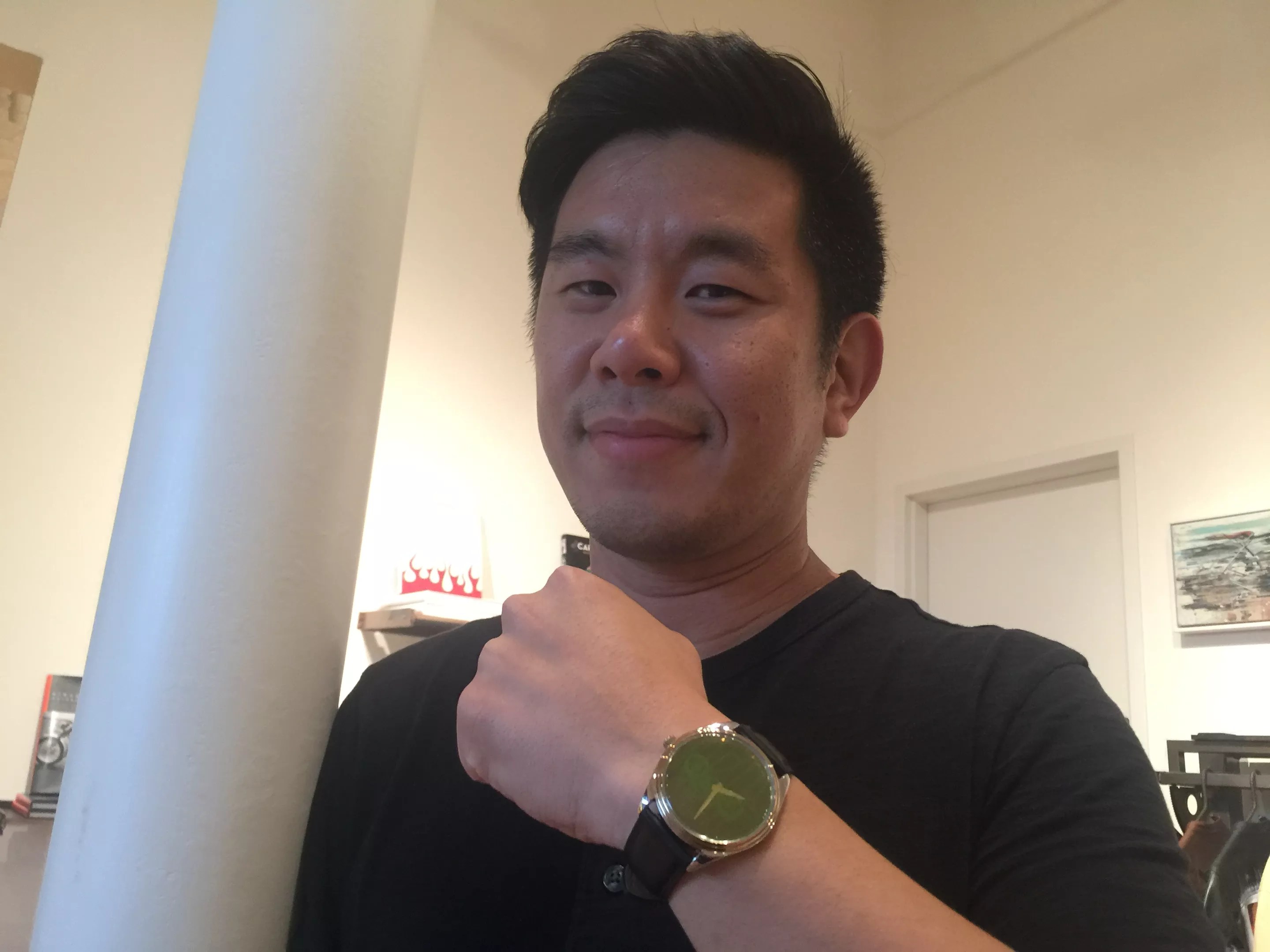 Jun Lee, the designer of Fossil’s new hologram watch, shows off his latest creation at the Haas Moto Museum & Sculpture Gallery.