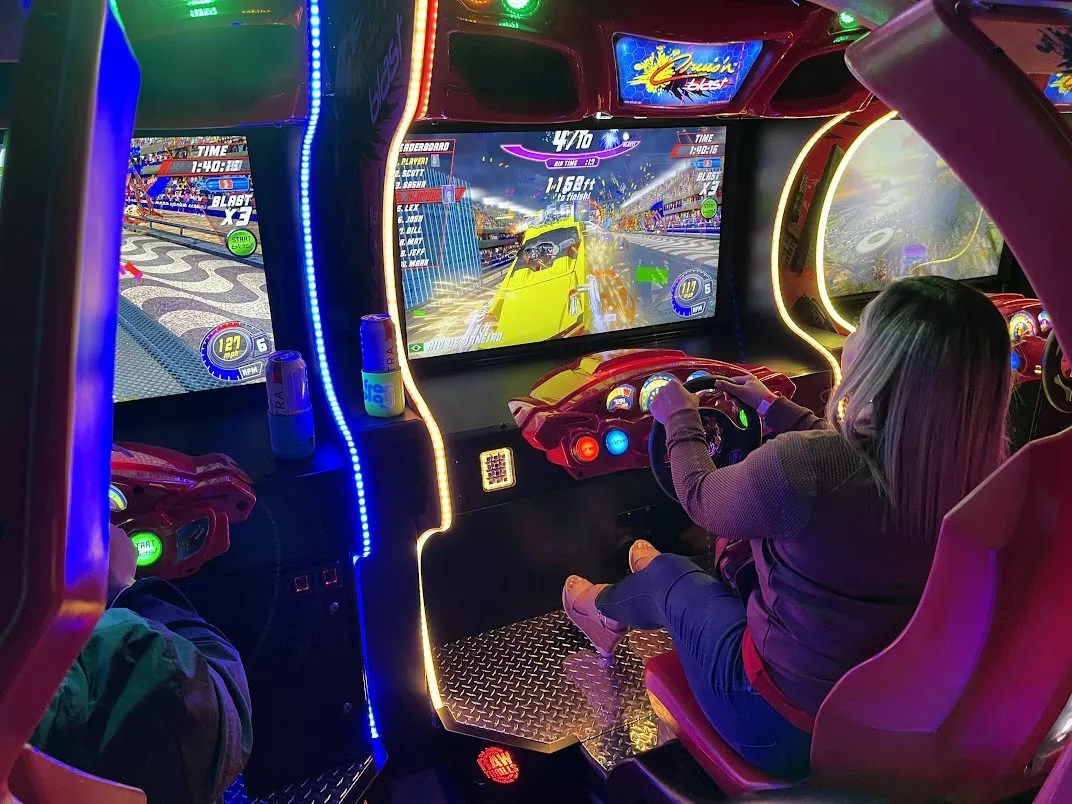 Free Play’s new Trinity Groves location is big enough to hold massive arcade games such as the four-seat Cruisin’ Blast race game from Raw Thrills.