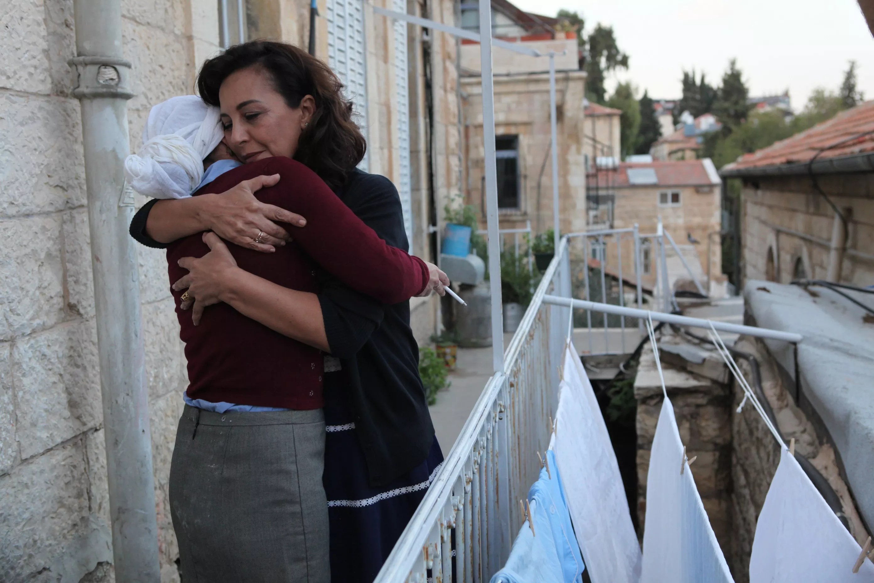 Rabbi David promises to help rebuild the temple, but first he suggests that the wives dress more modestly. His are not angry, fire-and-brimstone sermons but instead are almost lighthearted chats “explaining” why it honors women to keep them tucked out of sight. Step 1, each man presenting his wife with headscarves, is laughed off as a joke. Step 2, when the rebuilt temple does not include a women’s section at all, finds the women, led by Zion’s wife, Esther (Evelin Hagoel), choosing to protest.