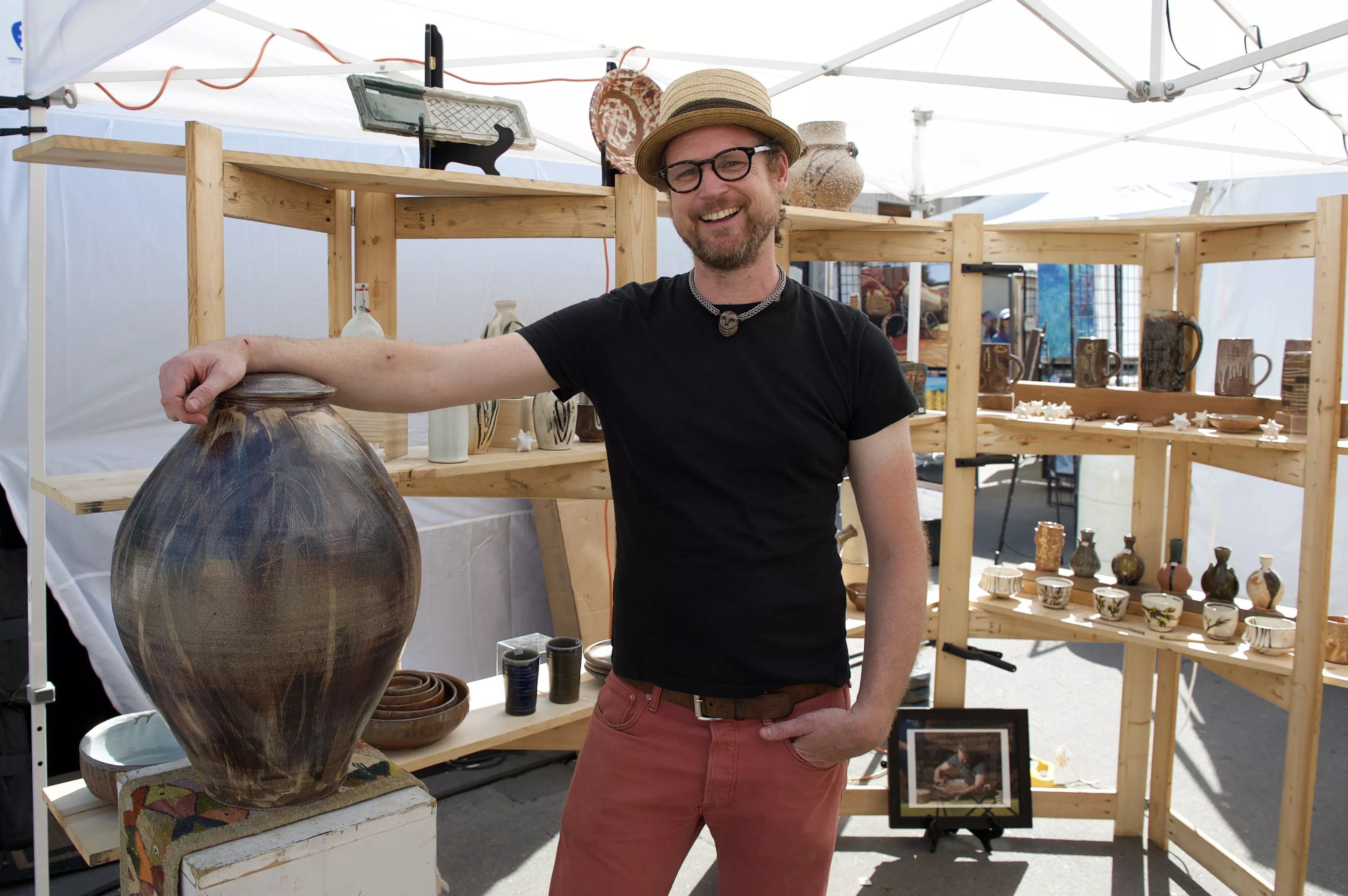 “Then depending on how you stack it in the wood kiln, that wood ash will deposit itself on the piece,” he explains.