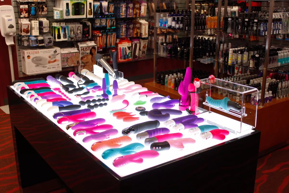 The majority of the sex toys are tucked away in the back corner of the shop.