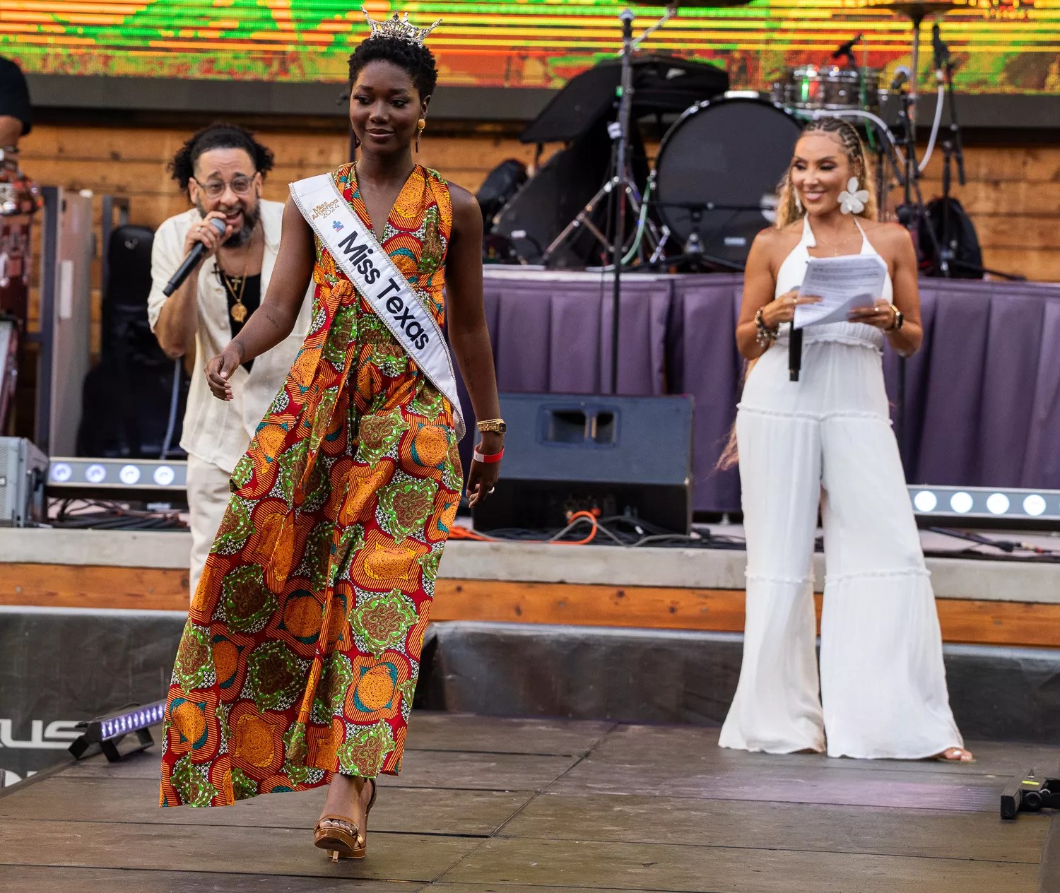 The night’s emcees, Lady Jade and Michael Shawn, kept the crowd engaged by beckoning them to rise from their seats and give us a “fit check” while strutting their stuff down the runway. Naturally, this led to adults and children alike hitting the runway, with Miss Texas 2024, Annette Addo-Yobo, leading the way.