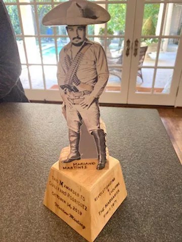 “I made a special little Emmy for him,” Martinez says. “In Spanish the letter M is pronounced Emmy, so it’s a little mini Tex-Mex Emmy. I had a friend of mine carve it out of wood … and it has my picture wearing a Mexican revolutionist outfit, for revolutionizing the margarita industry. And then you unscrew my head and sombrero, and it’s got a little hidden tequila thing.”
