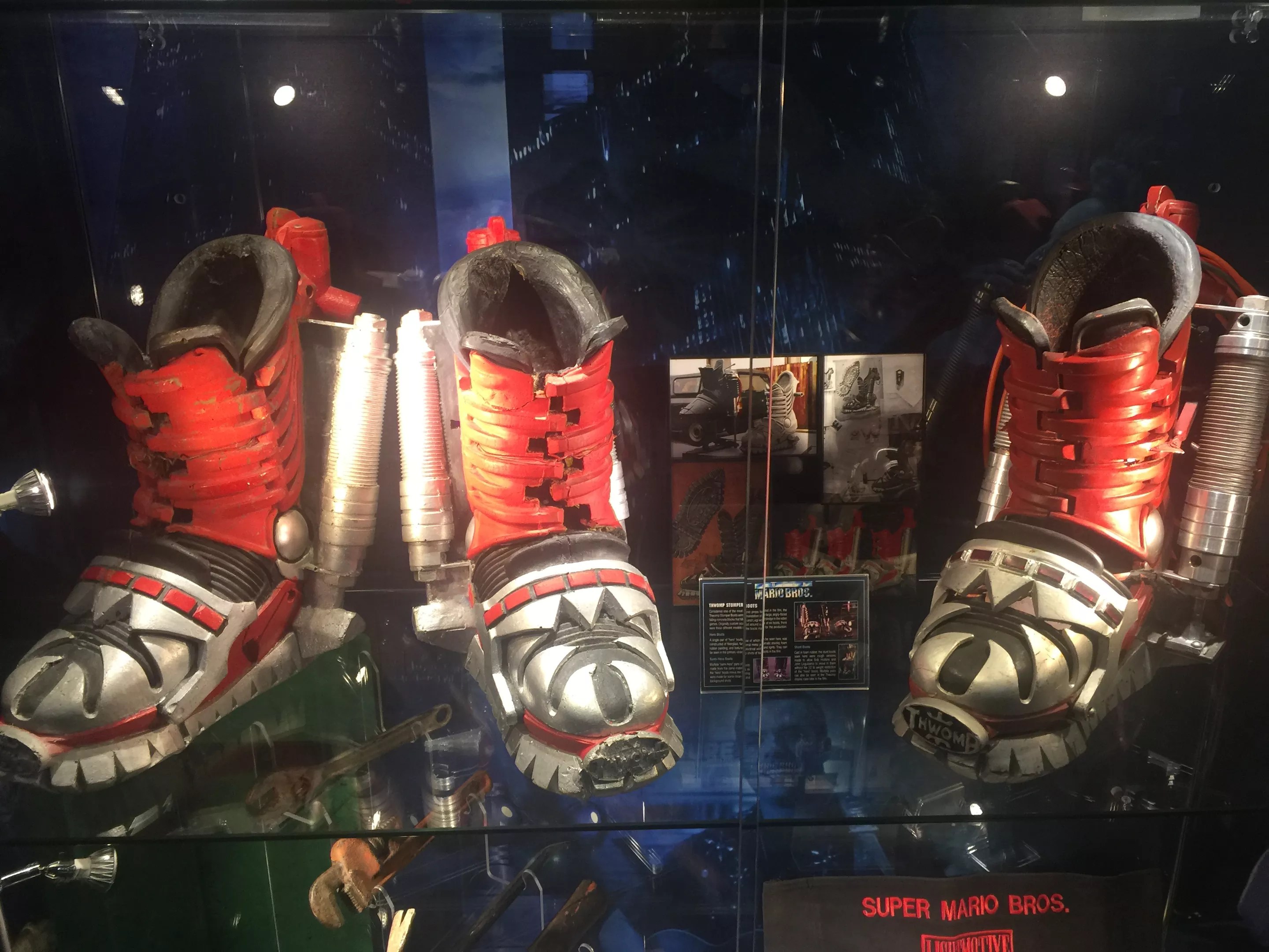 Film archivist and collector Blake Dumesnil loaned several props from the 1993 film Super Mario Bros. to the National Videogame Museum, including the Thwomp Stomper Boots worn by members of the film’s cast.