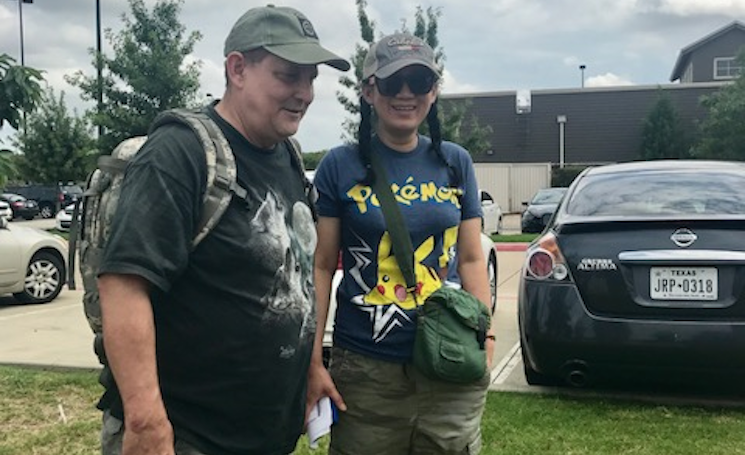 Many gamers on the tour wore vintage Pokémon T-shirts. One man, Jesus Raya of Dallas, says he and his girlfriend often drive around the Dallas area with friends playing the game. They hunted Pokémon in Los Angeles a few weeks ago.