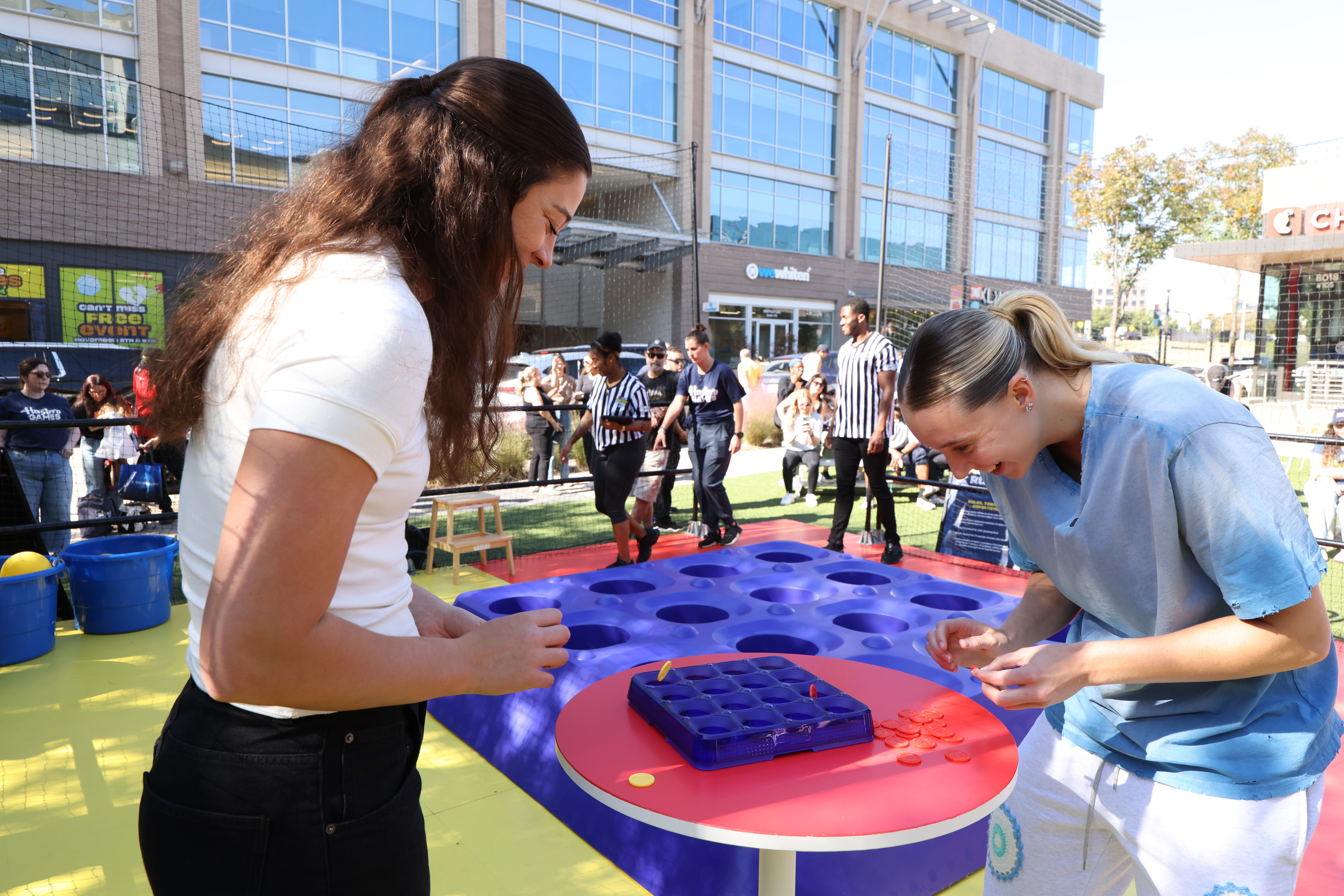 Earlier this month, we caught up with Bueckers and Siegrest while they made an appearance at The Shops at Park Lane for Hasbro Game Zone, a collaborative pop-up event with Amazon. Though they’re used to playing on the same team, the two standouts tested their skills and strategy against each other with large, interactive versions of Hasbro’s iconic games.
