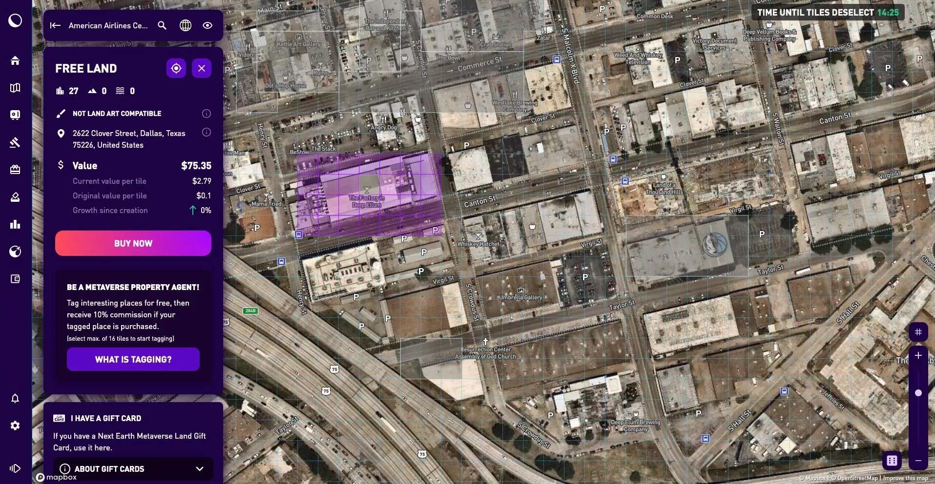 For example, If Mark Cuban wanted to create a virtual reality experience by using the American Airlines Center on the Next Earth platform, he would need to purchase the land tiles where the American Airlines Center sits in order to do so, and he would need to buy it from someone because the arena has had an owner since August 2021. The first person purchased the arena for about $13 and the current owner purchased it for over $11,000.
