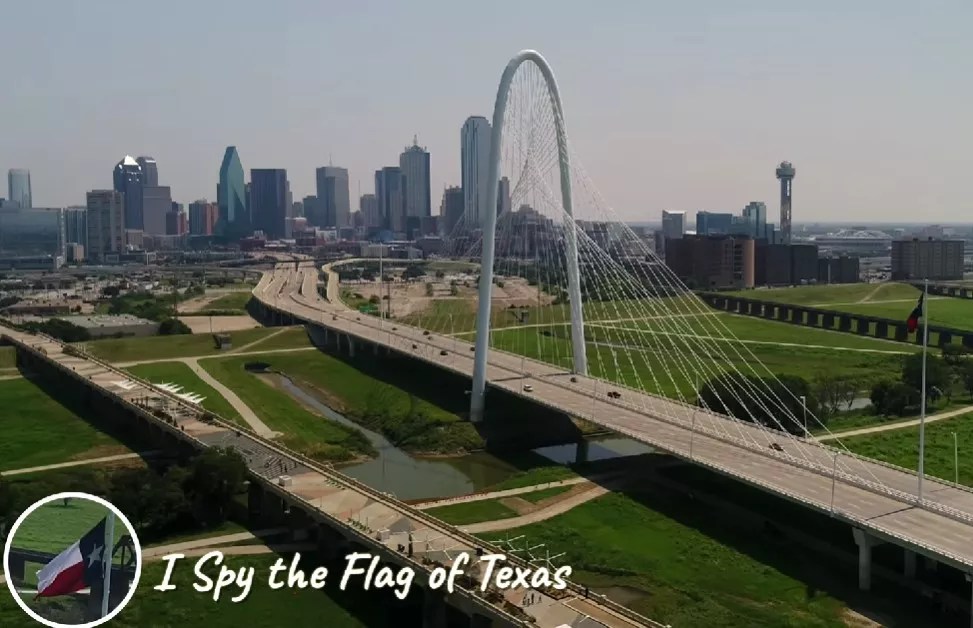 The video includes 10 aerial views of the city, each with a tiny image of focus that the viewer has to find. Some of the scenes show impressive overhead shots of places such as the AT&T Performing Arts Center, the Margaret Hunt Hill Bridge, the Trinity Railway Express and Chase Tower.