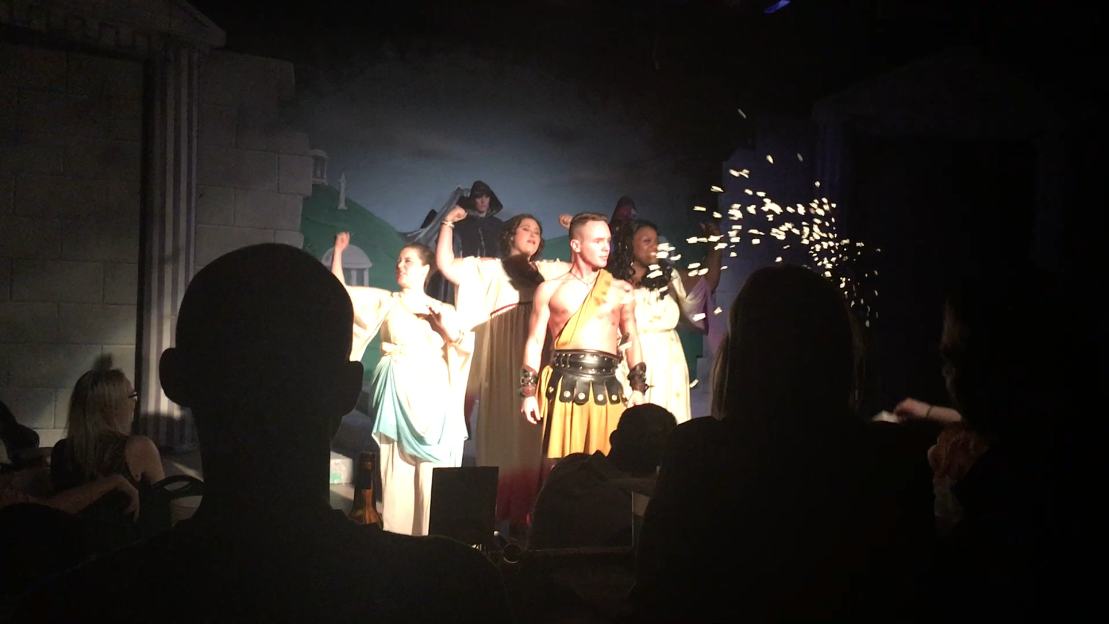 Before the show starts, the theater’s delightful waitstaff will serve you a drink. The program for the current show, The Final Adventure of Hercules, features a word search asking patrons to find nine of the 15 letters of the Greek alphabet hidden throughout the tongue-in-cheek cast bios.