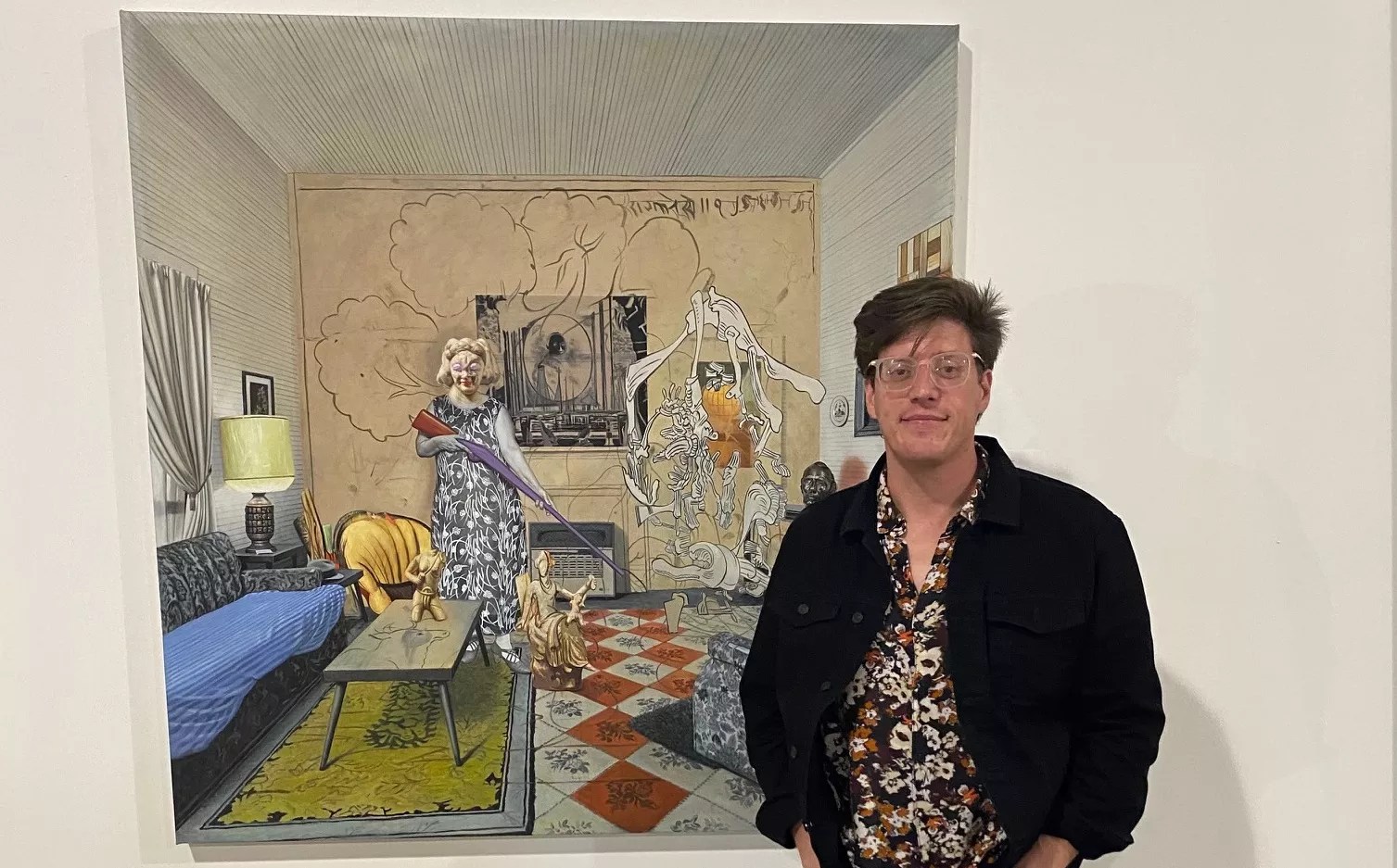 His artwork in Ongoing looked predominately at interior spaces, applying techniques of realism and precision with undeniable clarity. His paintings depicted rooms with varied articles and furniture, one being perhaps his most well-known painting, “Inner Sanctum,” of a dusty attic, empty except for a small, vintage crib-style bed covered in messy, white sheets posed eerily in the center. His current works, however, explore many styles and genres.