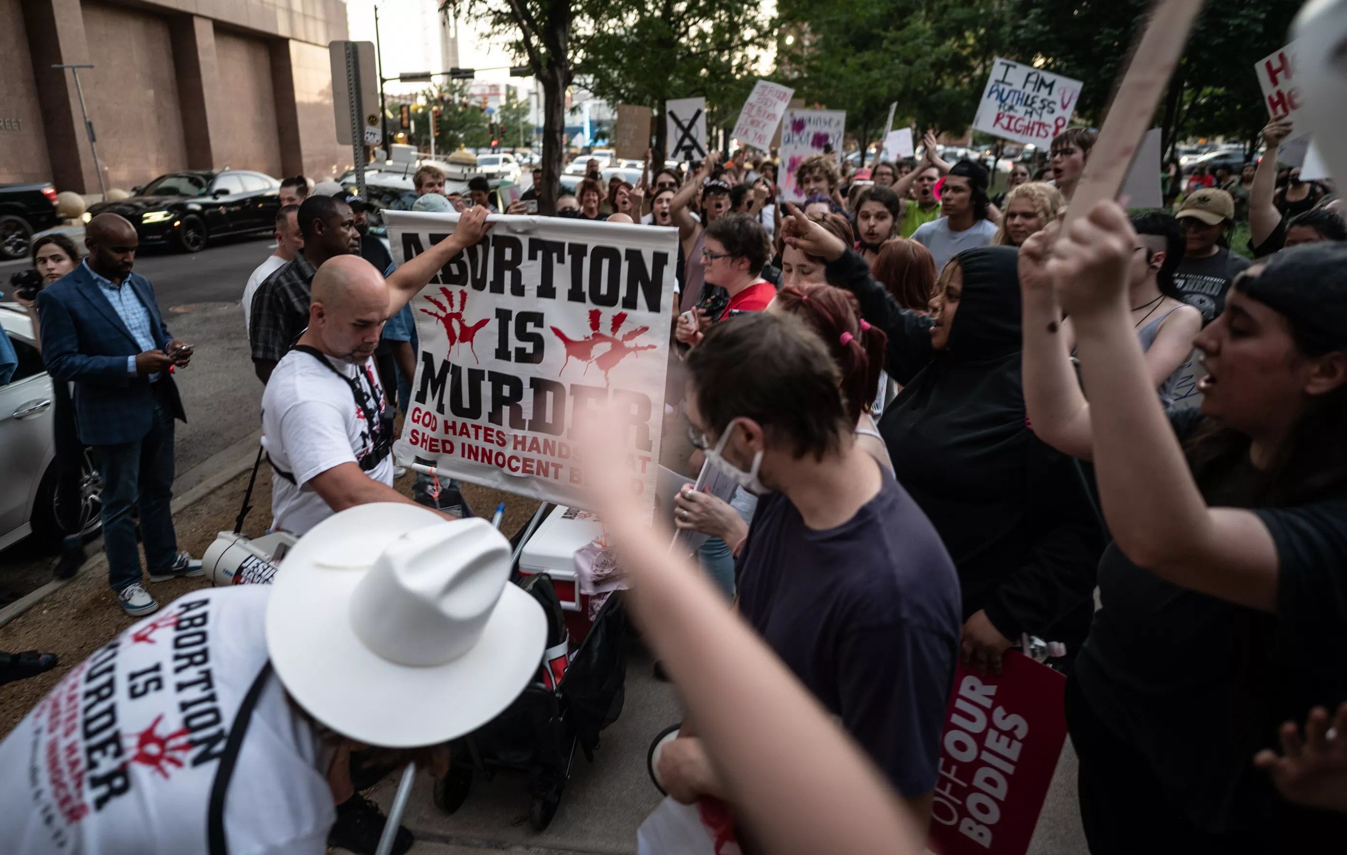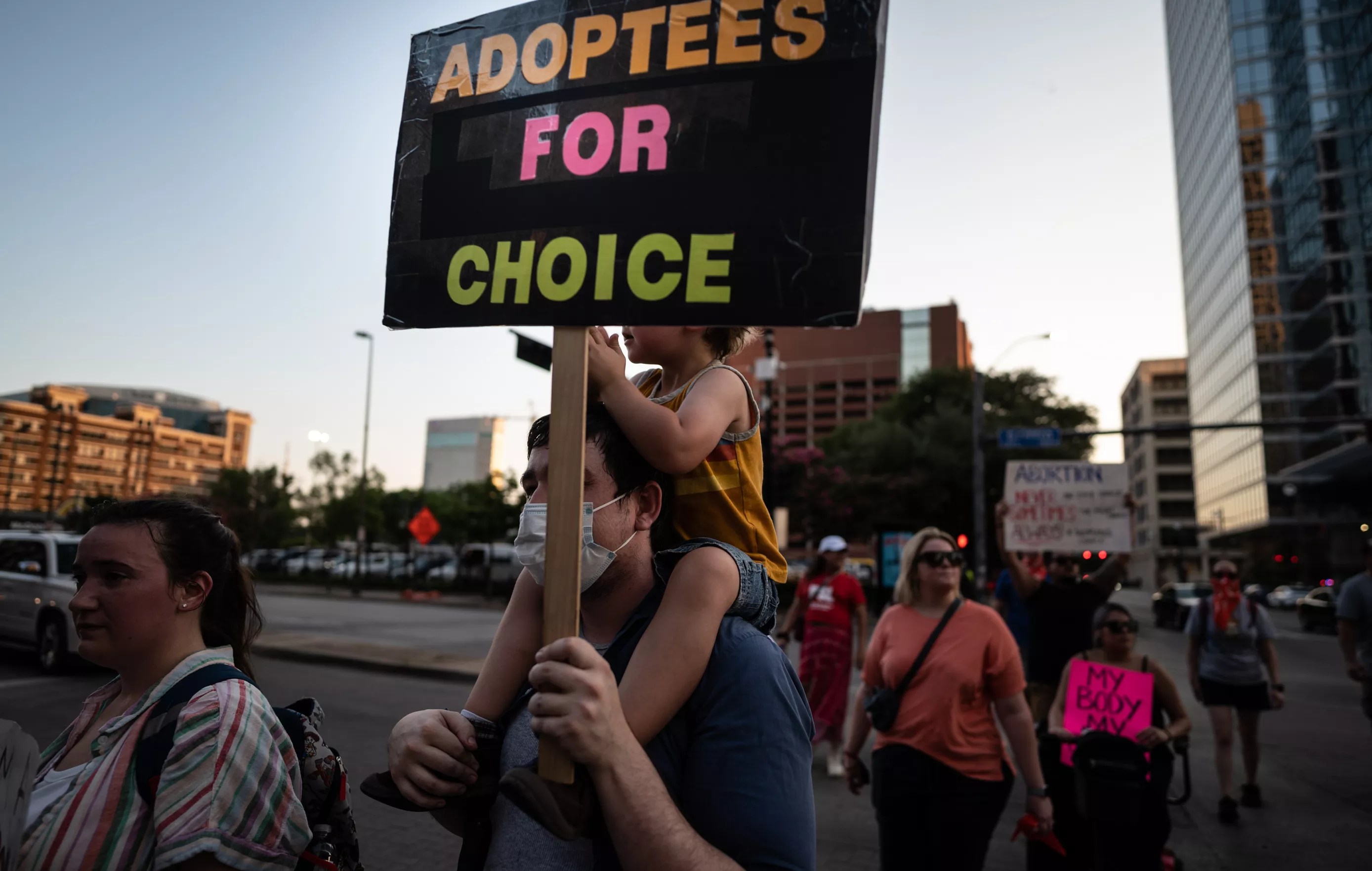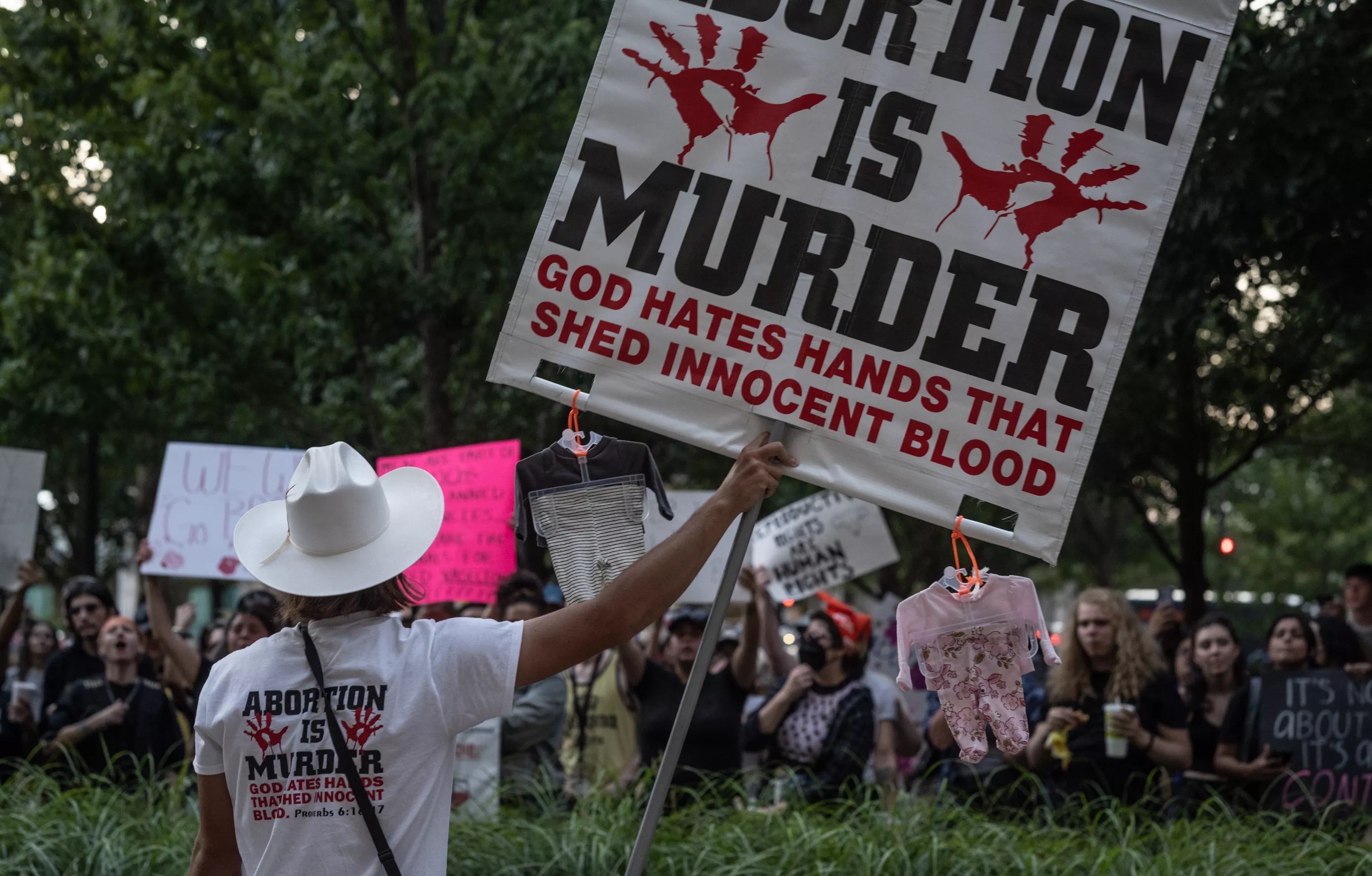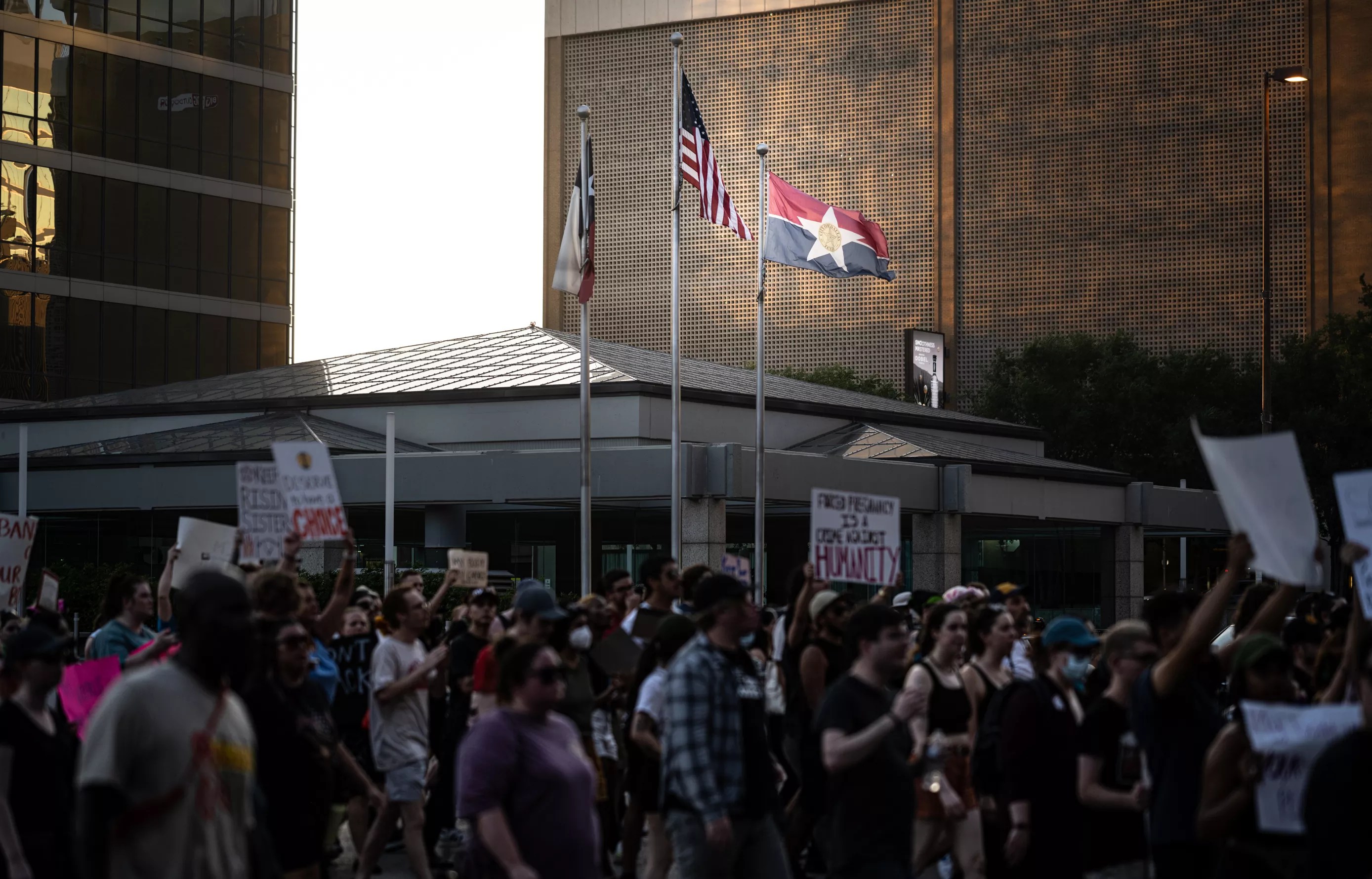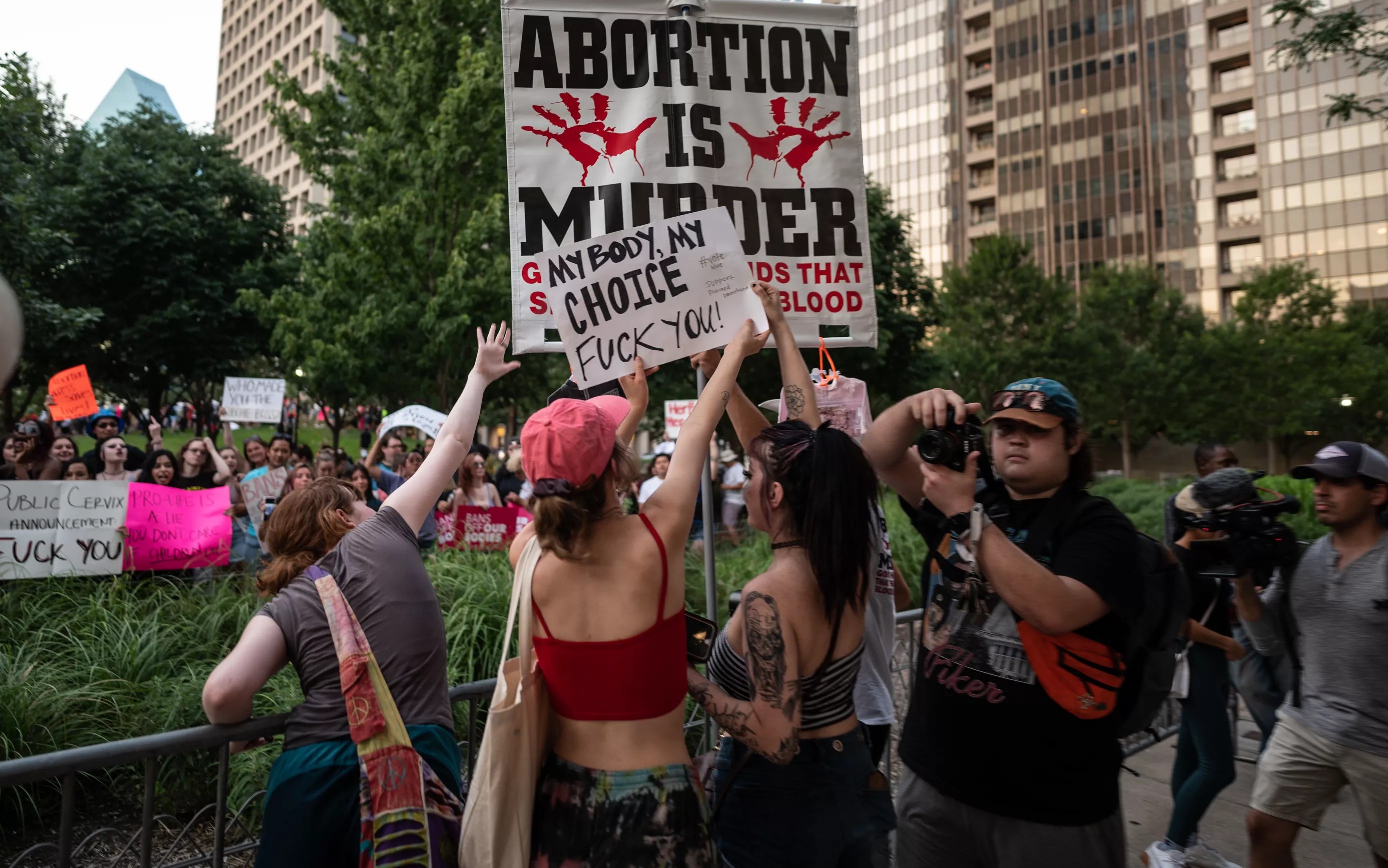 Activists protest the Supreme Court’s decision to overturn Roe v Wade in downtown Dallas on June 24, 2022.