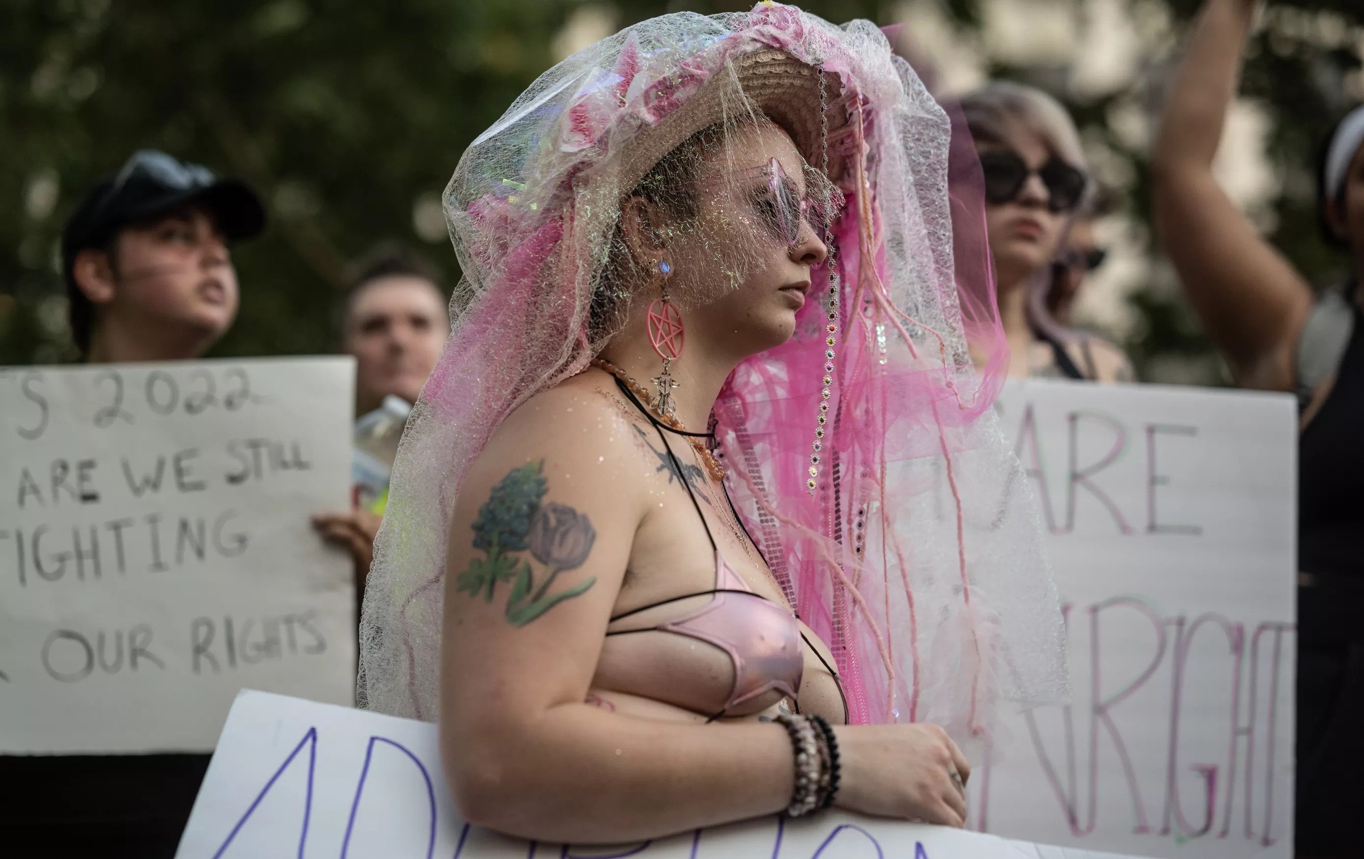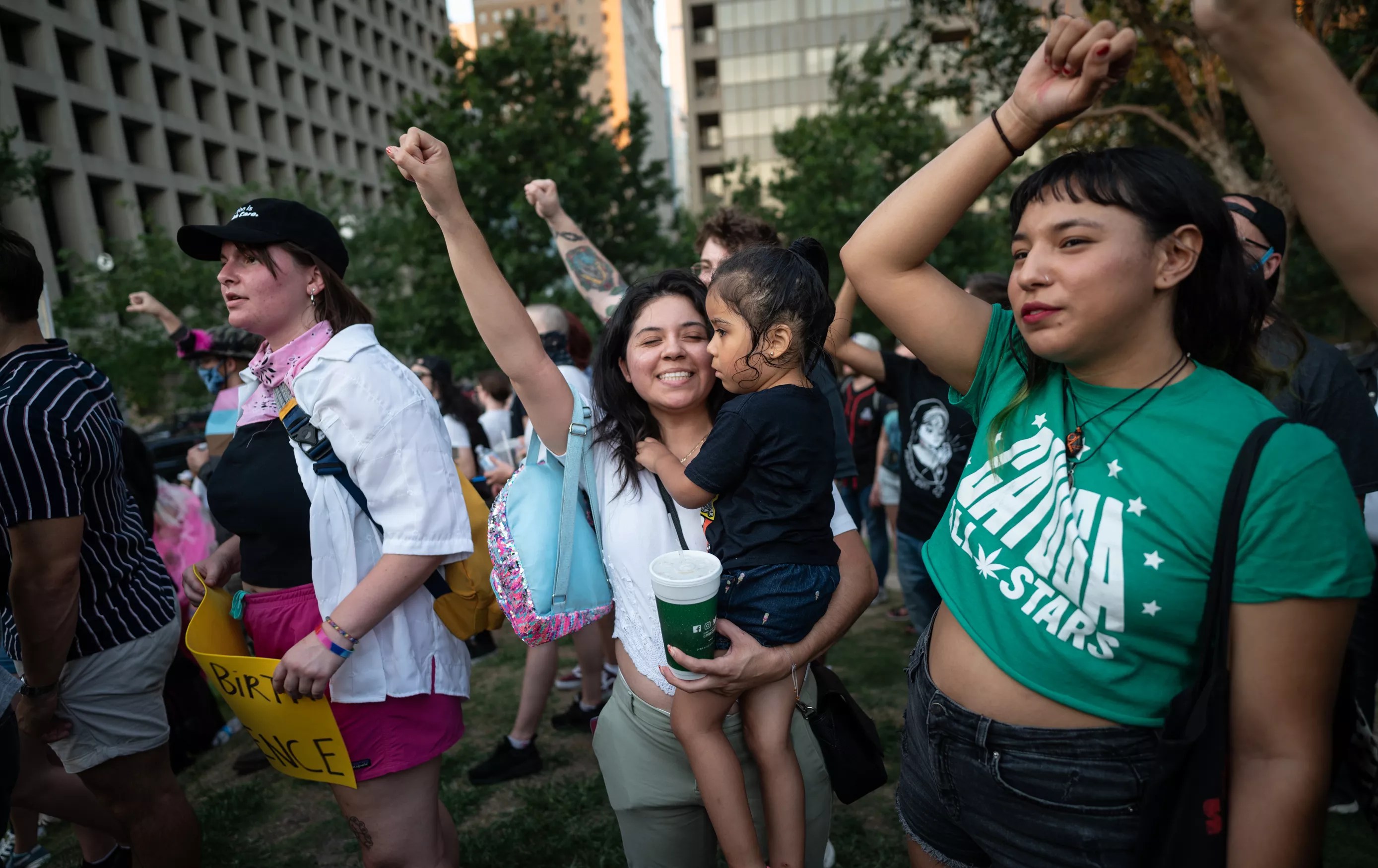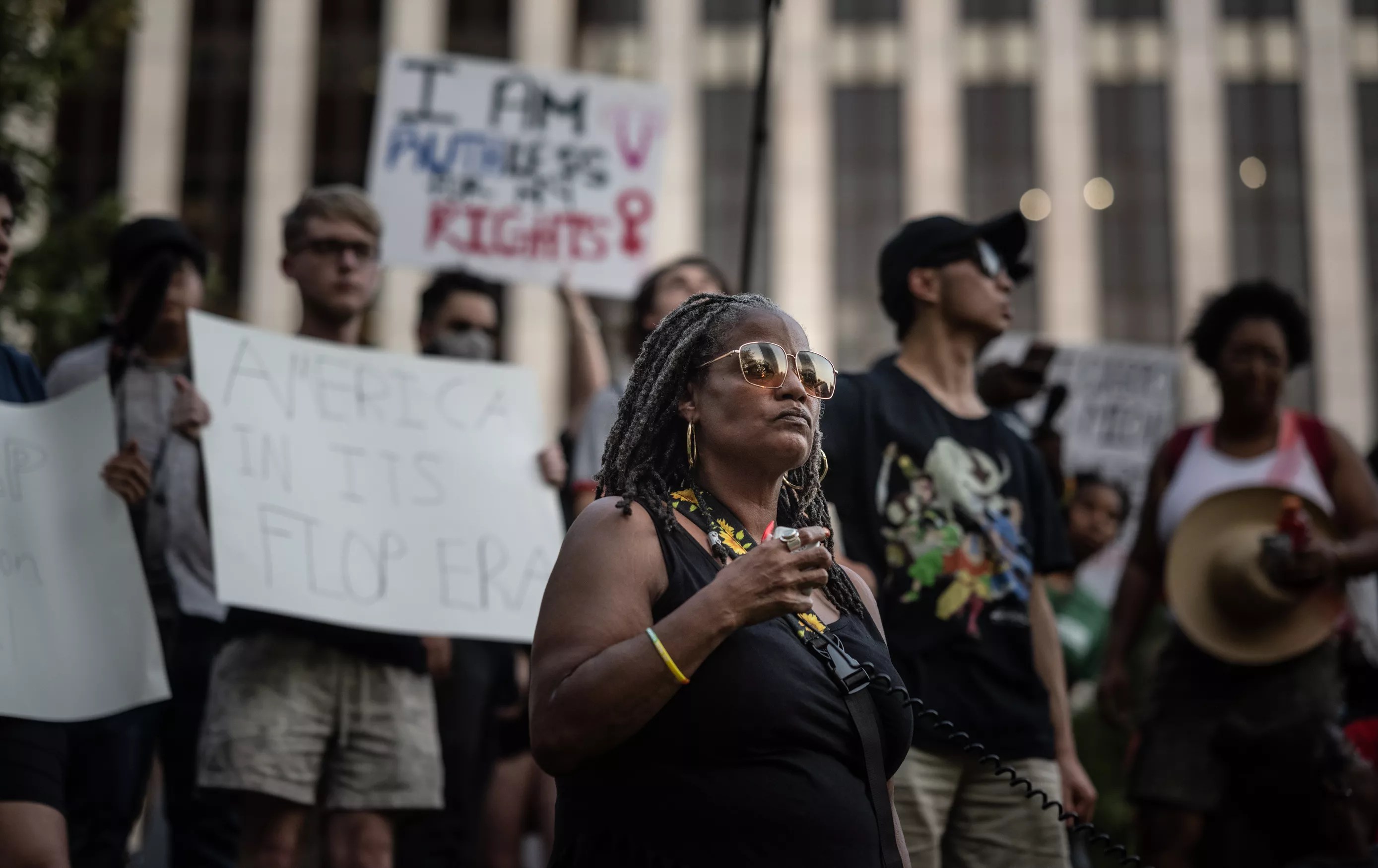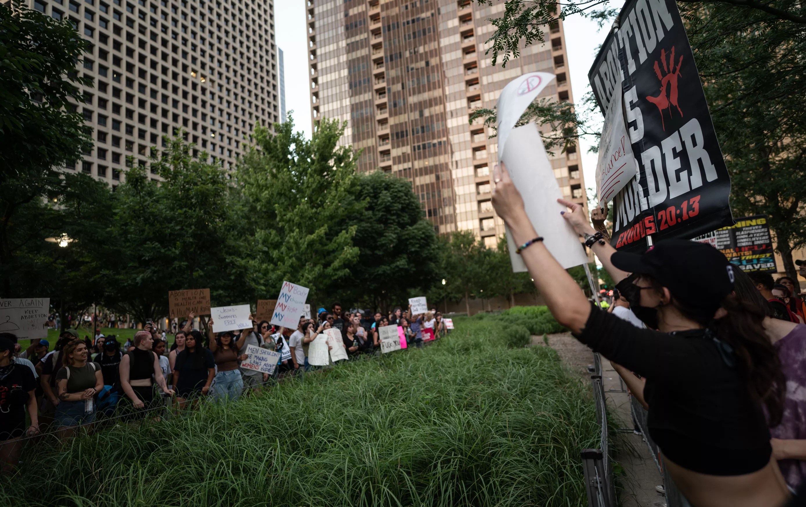 Activists protest the Supreme Court’s decision to overturn Roe v Wade in downtown Dallas on June 24, 2022.