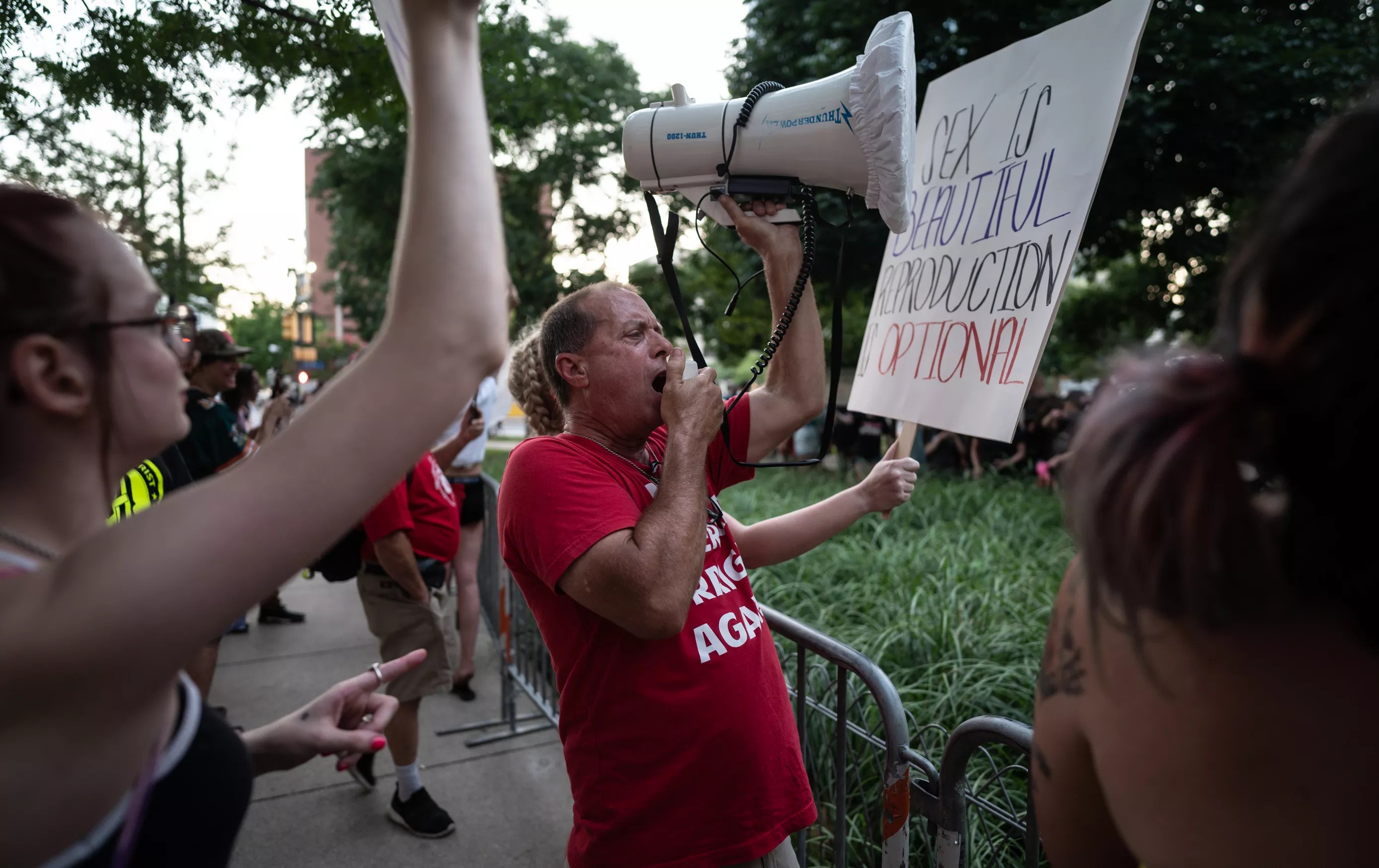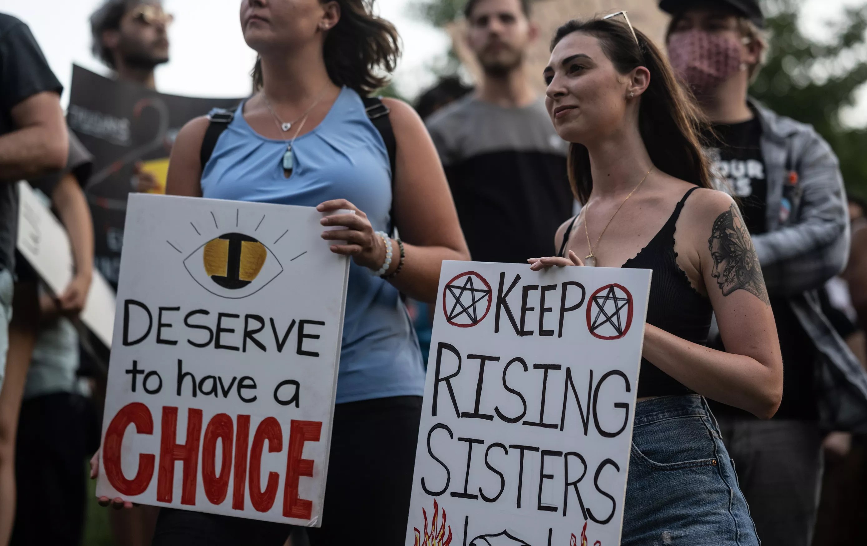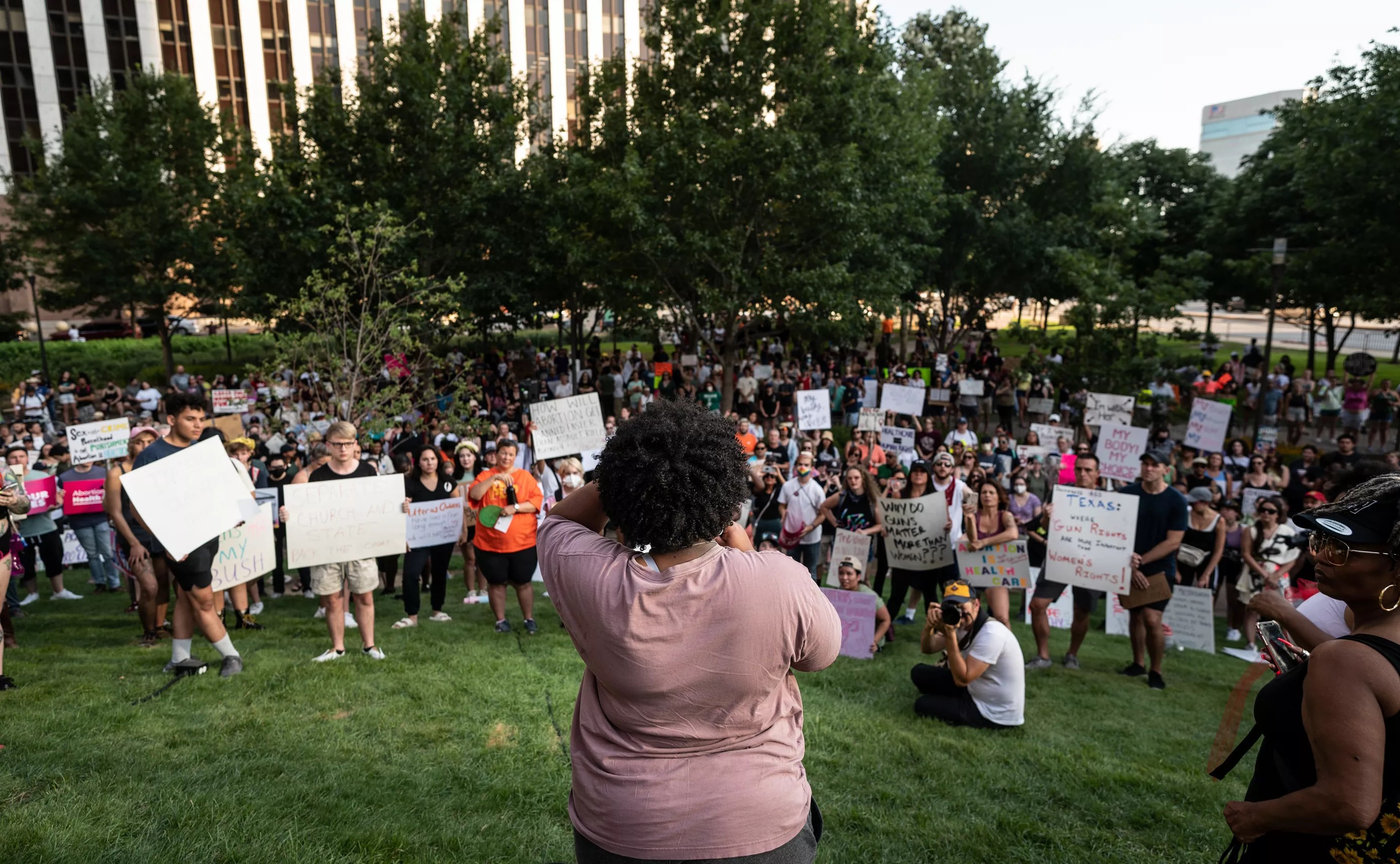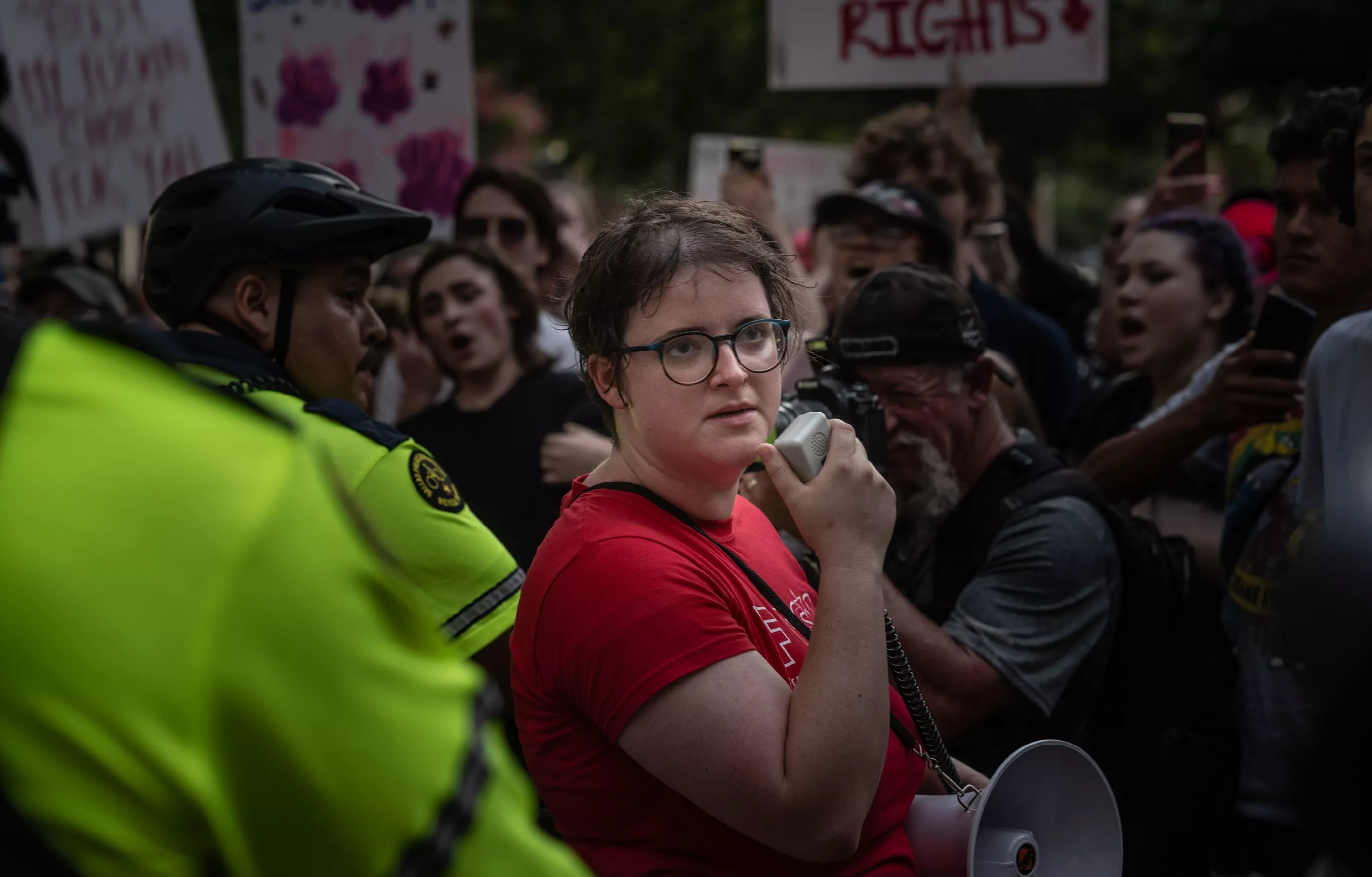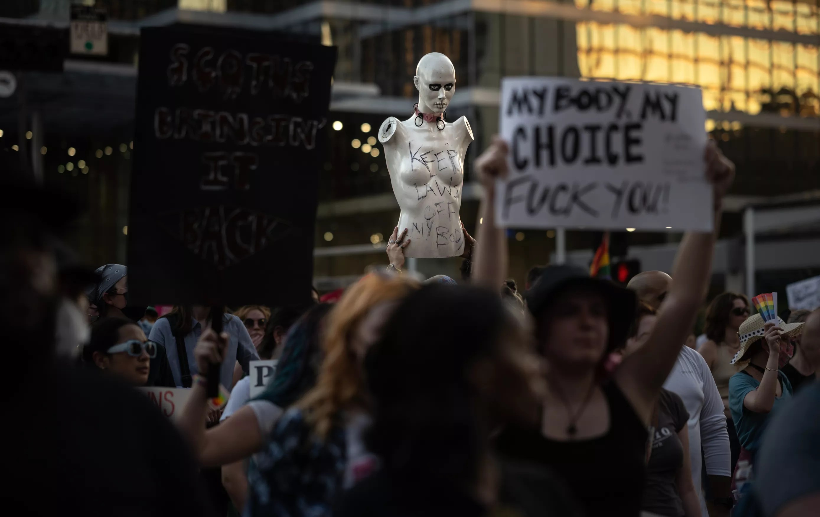 Activists protest the Supreme Court’s decision to overturn Roe v Wade in downtown Dallas on June 24, 2022.