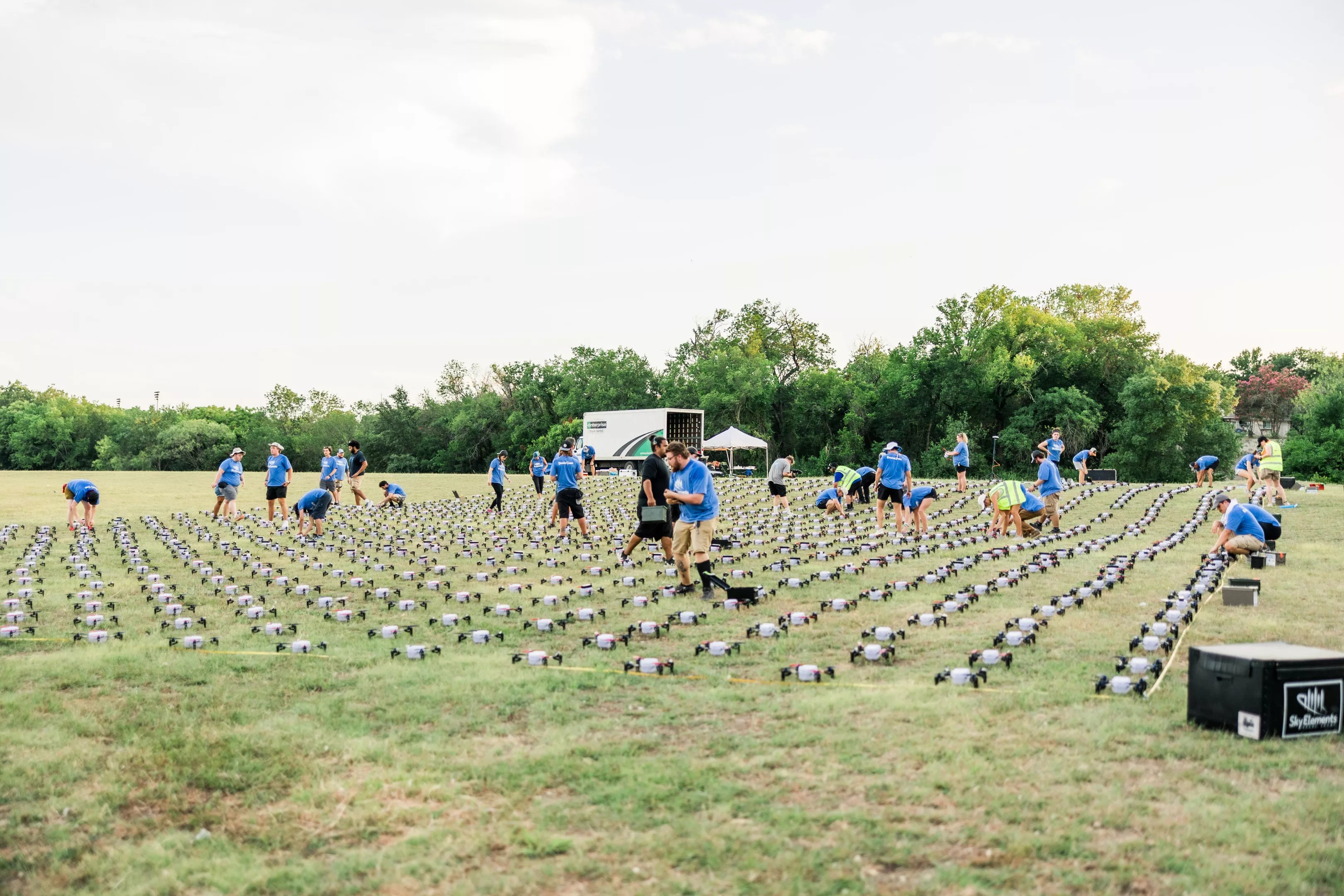 “We knew we wanted to do something big in our community,” says Rick Boss, the president of Sky Elements Drone Shows. “We saw this record was broken in the Middle East and we thought we need to bring that home to the States.”