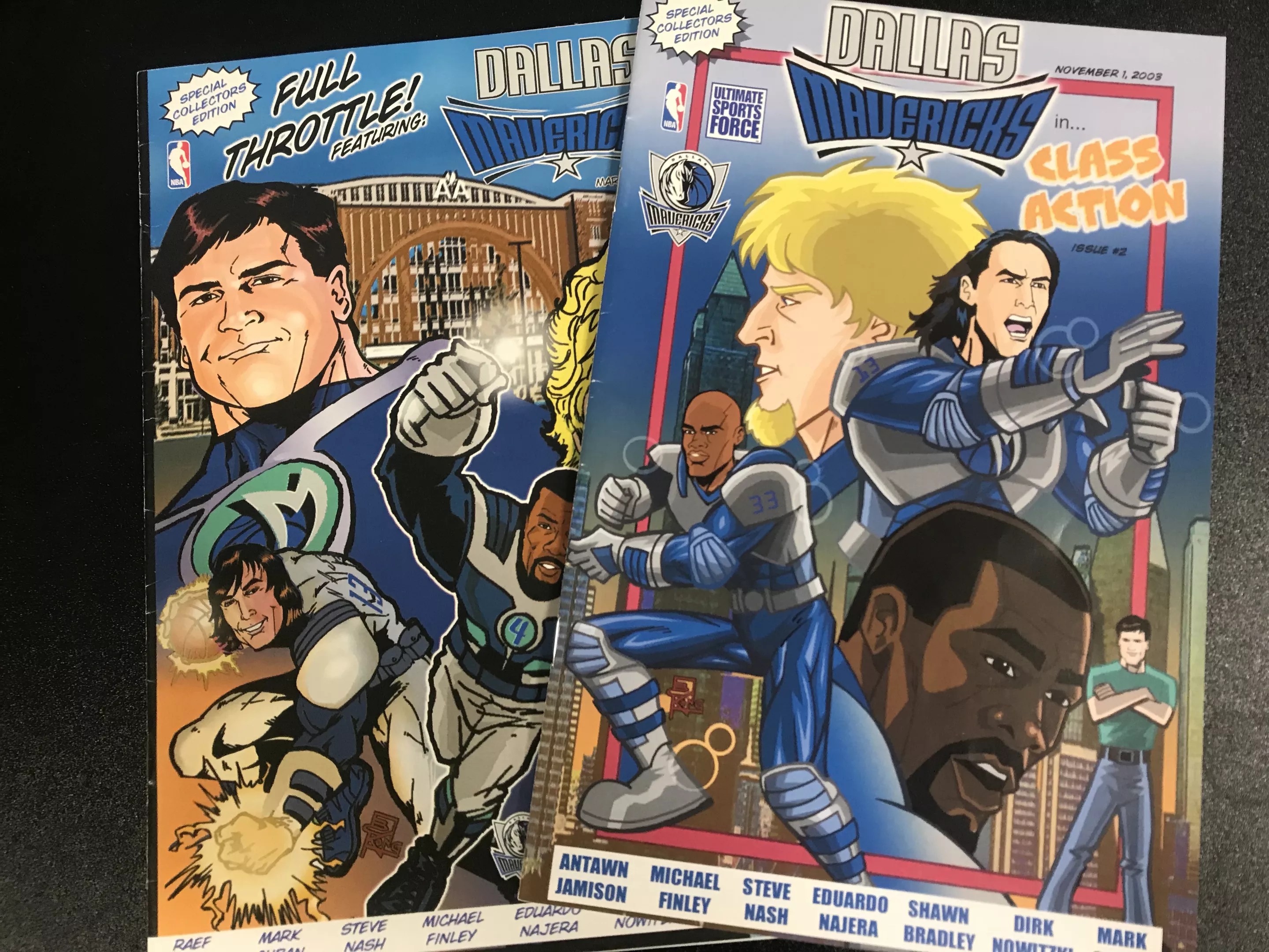 In 2003, the company Ultimate Sports Entertainment struck a licensing deal to produce and sell an action adventure comic starring the Dallas Mavericks. The comics were sold exclusively at Walmart, and the first 3,000 fans at a March 22, 2003, Mavericks game received a special American Airlines Center edition.