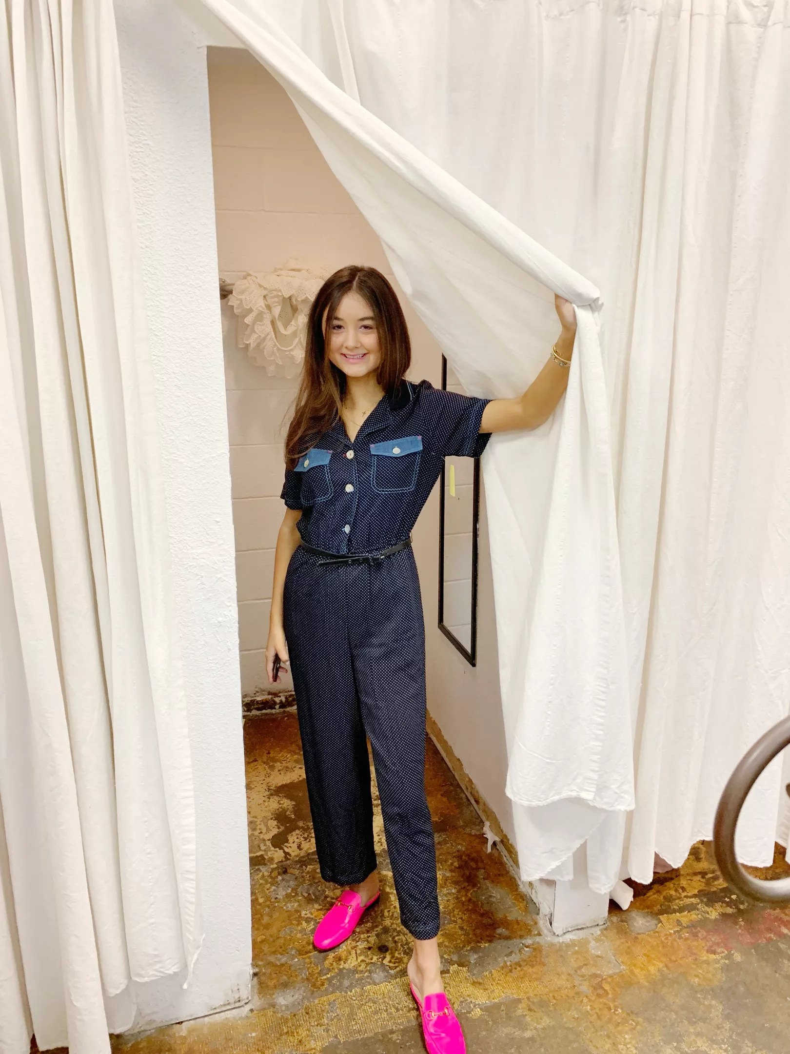 After combing through more racks, she stumbles on a faux denim and white polka-dotted jumpsuit with a thick black belt. At the line to the dressing rooms, most of the customers have their arms full of things to try, but McGuire stands there patiently with her one item. She knows what she likes.