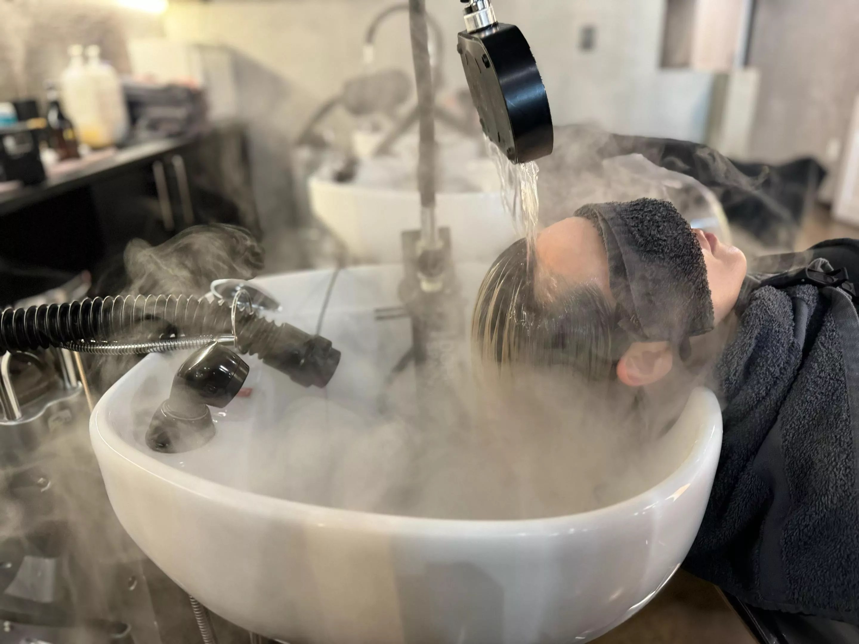 When it’s done, a strange, bubbly air tonic from a canister is sprayed onto the scalp. We’re pretty sure you’ve never felt anything like it; the best way we can describe it is that it feels like cold pop rocks on your head.