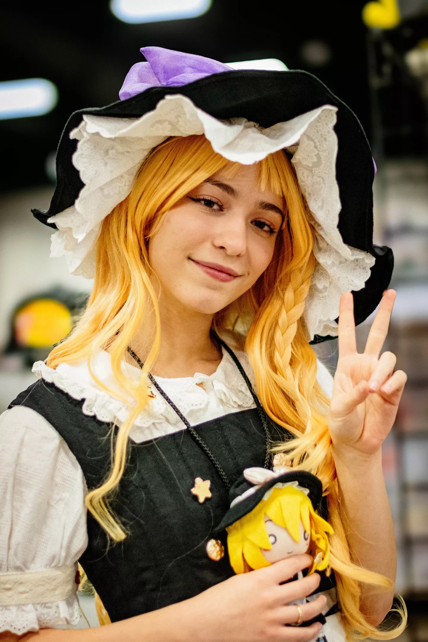 It was nice of this fan to carry around a doll of her character for reference.