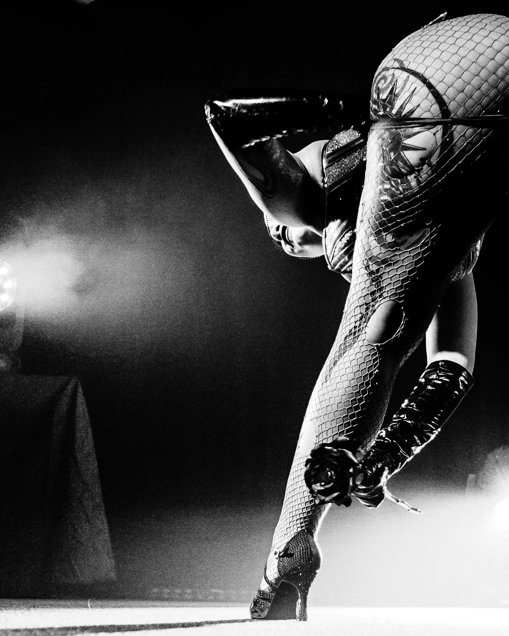 The first act was Rosa Lee Bloom & Ruby Lead, performing a priest-on-nun bit, ending with both of them kneeling down before a crucifix with dildos attached to the ends and recreating the infamous Lady and The Tramp scene. Several more performers hit the stage, performing dance bits, some aerial acrobatics and even a fashion walk featuring some of the wildest latex outfits by the talented designer Dawnamatrix.