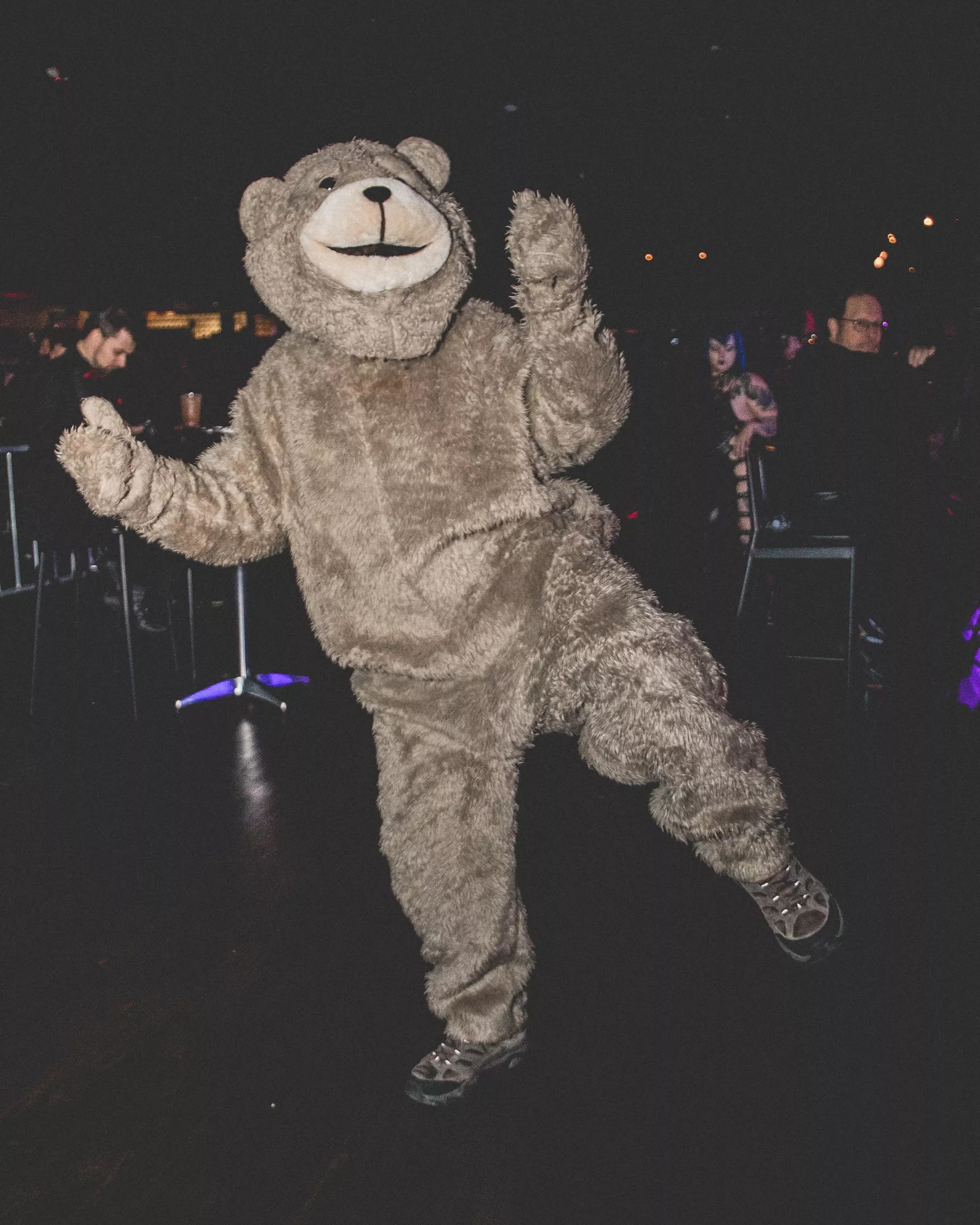 DJ Lord Byron, Alley Kat and Joe Virus kicked out the tunes for the evening. You could definitely count on “Pain” by Boy Harsher being played at any point of the night, fittingly so. If you weren’t watching the whippings or performances, you could always be entertained by people-watching or seeing attendees lubing up their finest latex and gimp suits for this night. If that wasn’t your kink, there were also plenty of leather dog masks walking around and even a person in a giant teddy bear suit.
