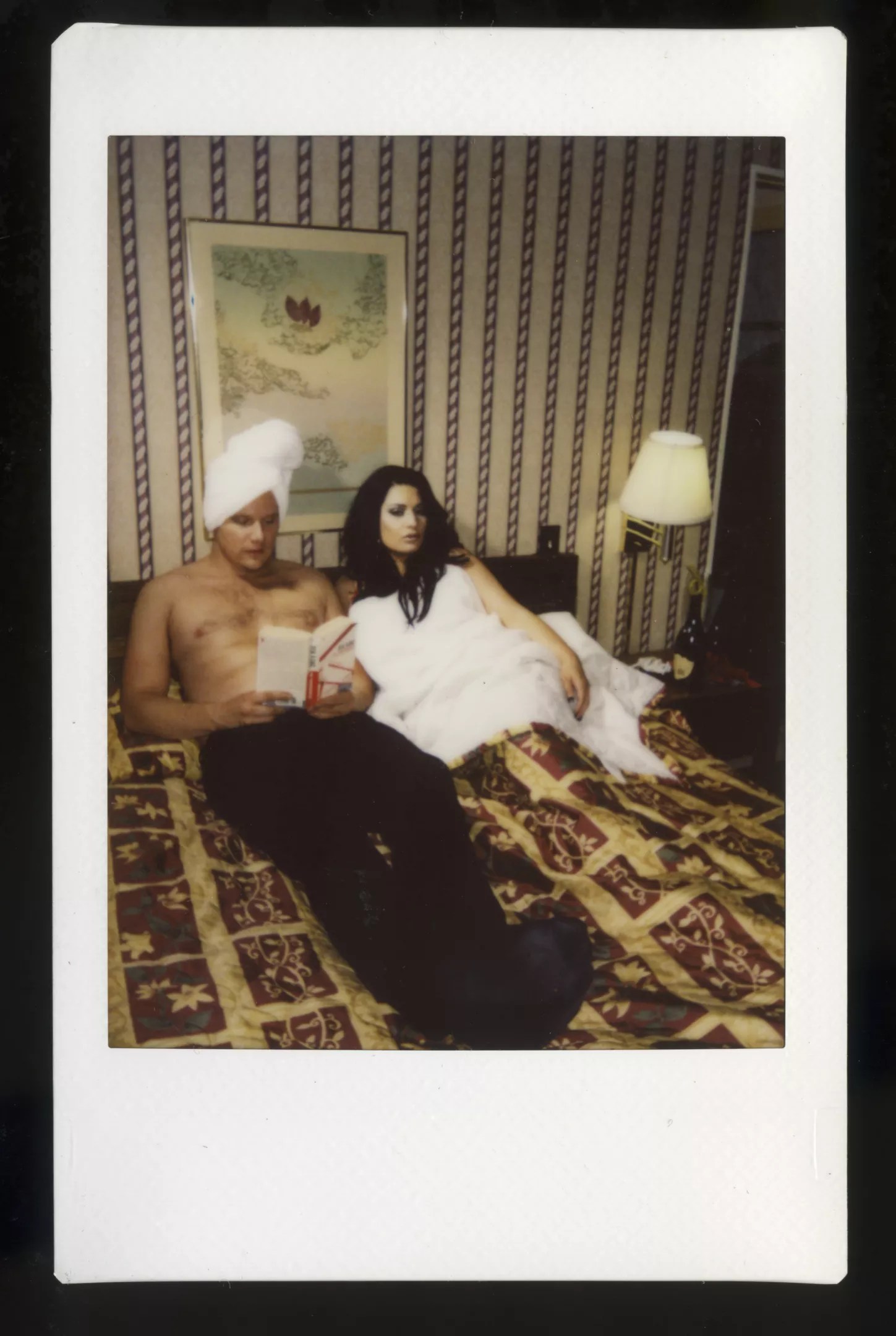 We took a cigarette break in the parking lot and the attendant immediately rushed up to us and peeked into our room, which looked like a scene out of Boogie Nights. She scanned the photo equipment — tall camera lights with umbrellas flanking each side of the bed — the colossal piles of cigarette butts, and the scandalous variety of condoms, polaroid pictures and rose petals on the bed. She glanced at Stephen and me, still in some form of undress, and her disapproving facial expression made it pretty clear she believed she’d stumbled onto the set of a porno.