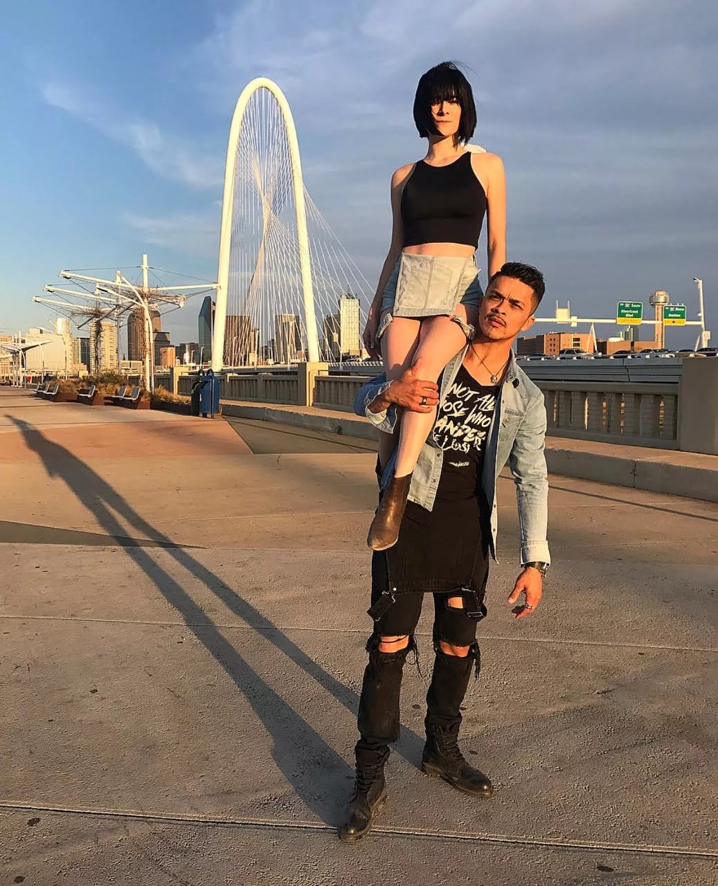 Loredo: We wanted somewhere that showed the scenic side of Dallas. We found a hidden gem above the intersection of Hampton and I-30. From there, we went on to the Trinity River Bridge for the second location and finally came back at sunset to the location above Hampton and I-30. Luckily, we didn’t have many people walking on the bridge while we recorded. We filmed for about an hour and a half in order to get all the right angles. We did it around rush hour though, so there were people honking and yelling outside their windows at us.