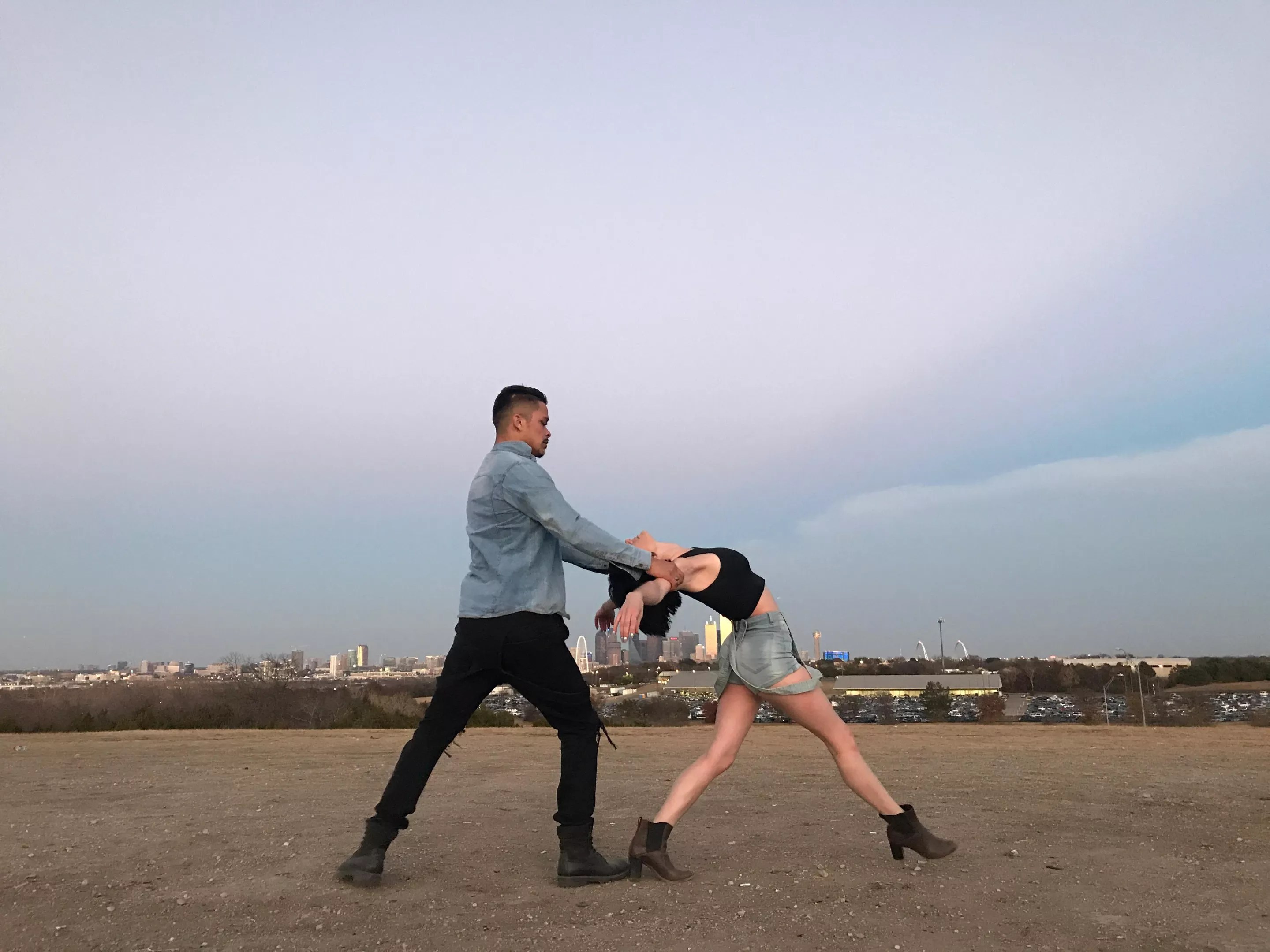 Loredo: We wanted somewhere that showed the scenic side of Dallas. We found a hidden gem above the intersection of Hampton and I-30. From there, we went on to the Trinity River Bridge for the second location and finally came back at sunset to the location above Hampton and I-30. Luckily, we didn’t have many people walking on the bridge while we recorded. We filmed for about an hour and a half in order to get all the right angles. We did it around rush hour though, so there were people honking and yelling outside their windows at us.