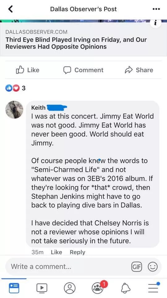 Chelsey Norris’ review of Third Eye Blind made one man not take her seriously ever again. But he also won’t not do that.