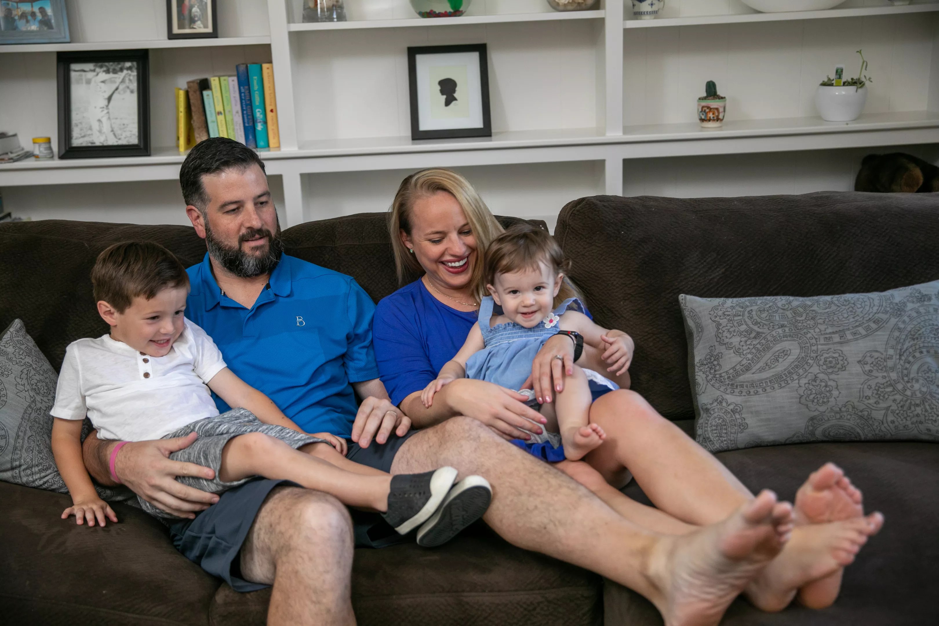 Husband Kelly Forbes and Julie Dobbs with their children at home