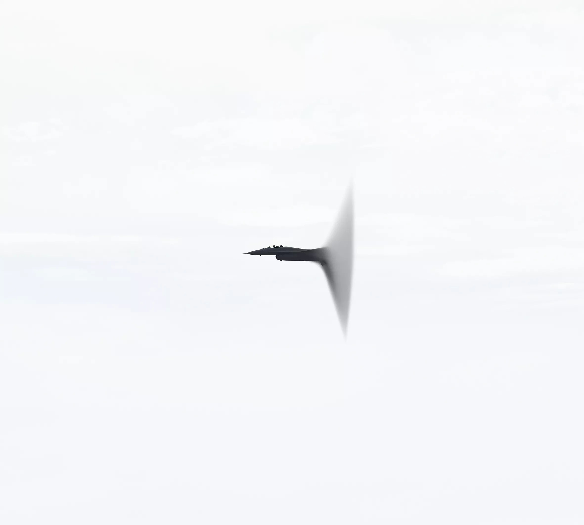 The only photo in the bunch is by Galvani, and it’s a stark, black and white, painting-like image of a jet breaking the sound barrier. “It stopped us in our tracks,” Delahunty says, who added that because it exists at the intersection of art and science it will be a versatile piece for the museum.