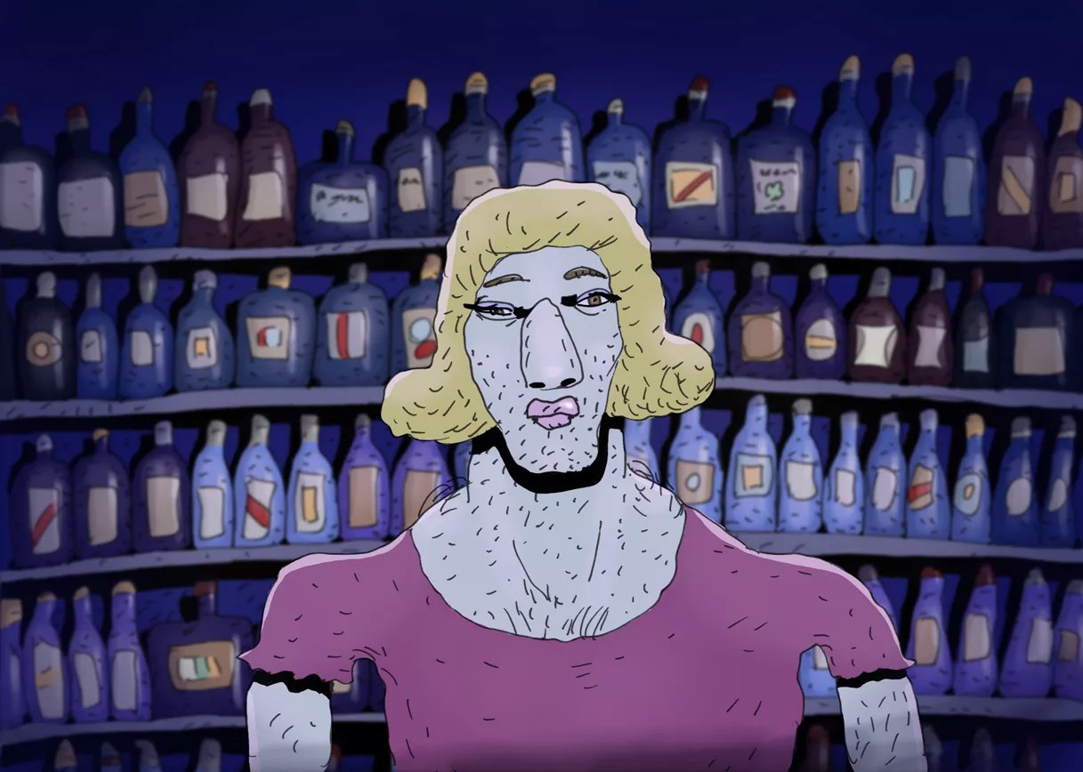 What happens when you let two terrific weirdos co-create an animated feature film? You wind up with the newest full-length, Revengence. Written and designed by Los Angeles animator Jim Lugan, but inked out by Bill Plympton, this one spins out the story of a California bounty hunter as he’s shaking down desert goons to get his man – or in this case, woman.