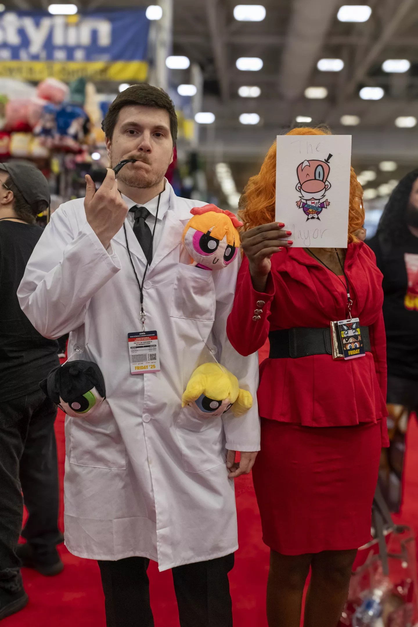 The Professor and Miss Bellum from The Powerpuff Girls brought along their trademark pipe and censored face.