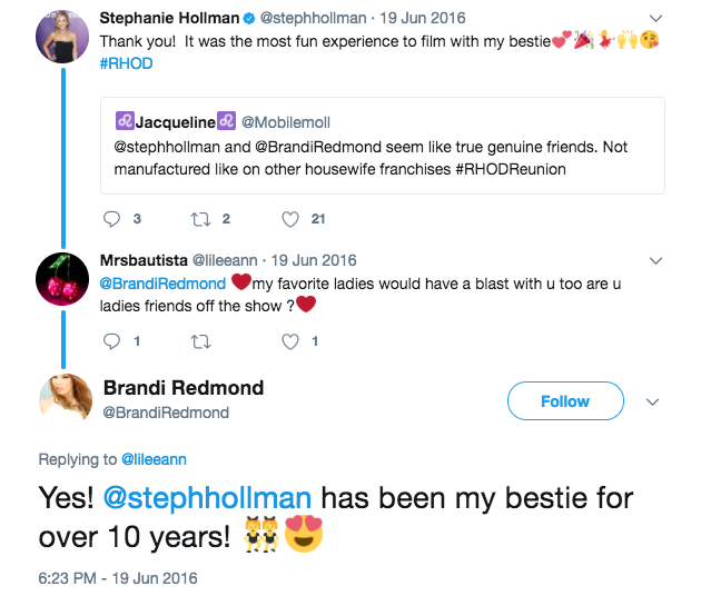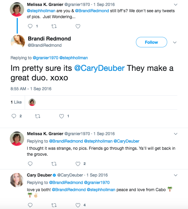 Redmond tweets a fan that Hollman and Deuber are BFFs.