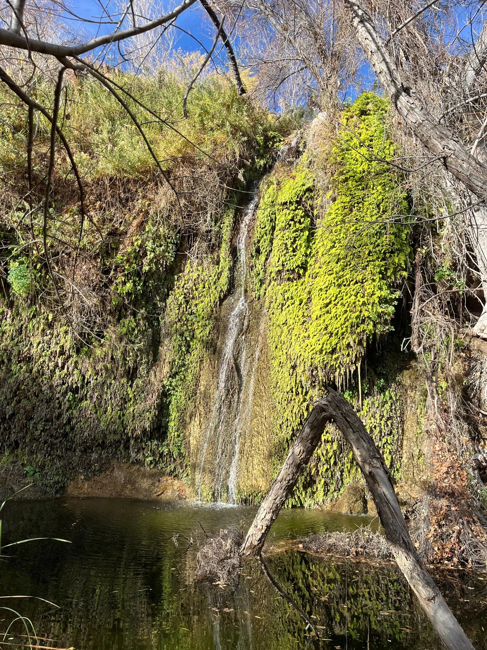 At 100 feet tall, Madrid Falls is an enigma wrapped in a quagmire. While its cool, refreshing lushness and scenic beauty spill into the Rio Grande River, it remains surrounded by hot, dry desert terrain and spectacular cliffs. Its majestic drama is magnified by its elevation, which is 3,681 feet above sea level, and its streaming power is amplified after sizable rains.